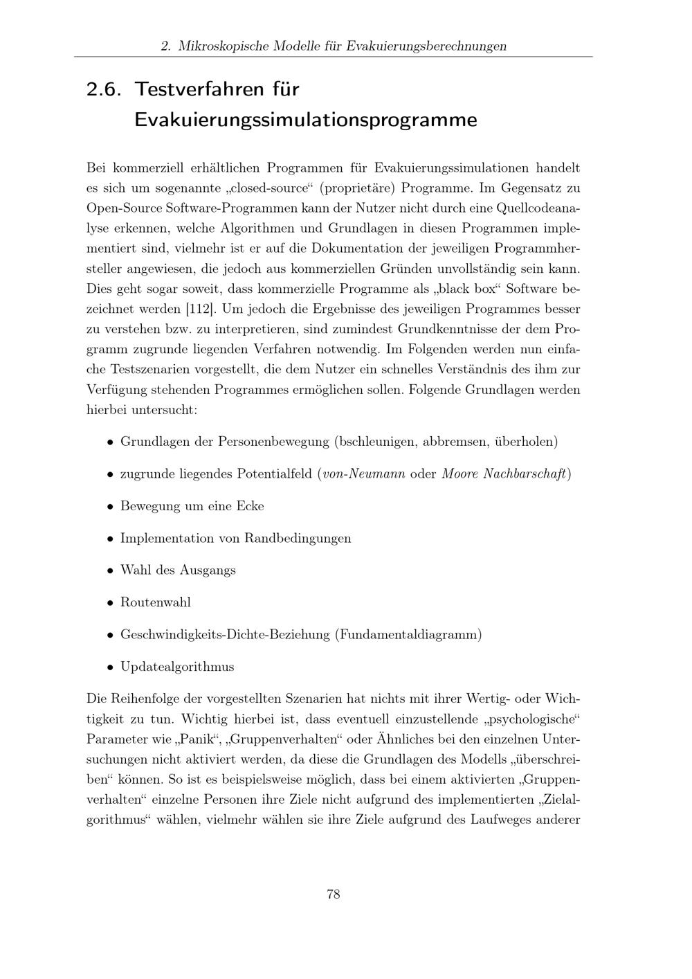 Testverfahren für Evakuierungssimulationsprogramme
