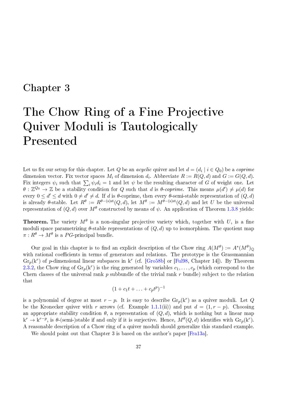 On Chow rings of fine quiver moduli and modules over the cohomological Hall algebra / vorgelegt von Hans Franzen