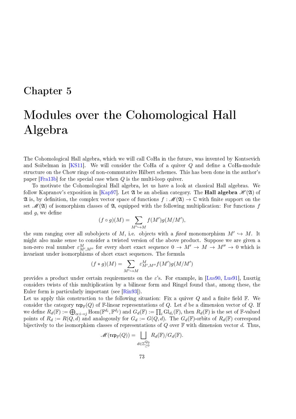 On Chow rings of fine quiver moduli and modules over the cohomological Hall algebra / vorgelegt von Hans Franzen