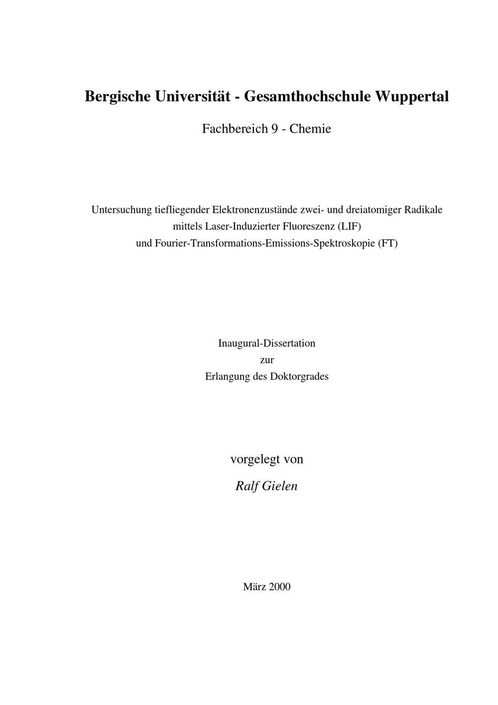 Untersuchung tiefliegender Elektronenzustände zwei- und dreiatomiger Radikale mittels laser-induzierter Fluoreszenz (LIF) und Fourier-Transformations-Emissions-Spektroskopie (FT) / vorgelegt von Ralf Gielen
