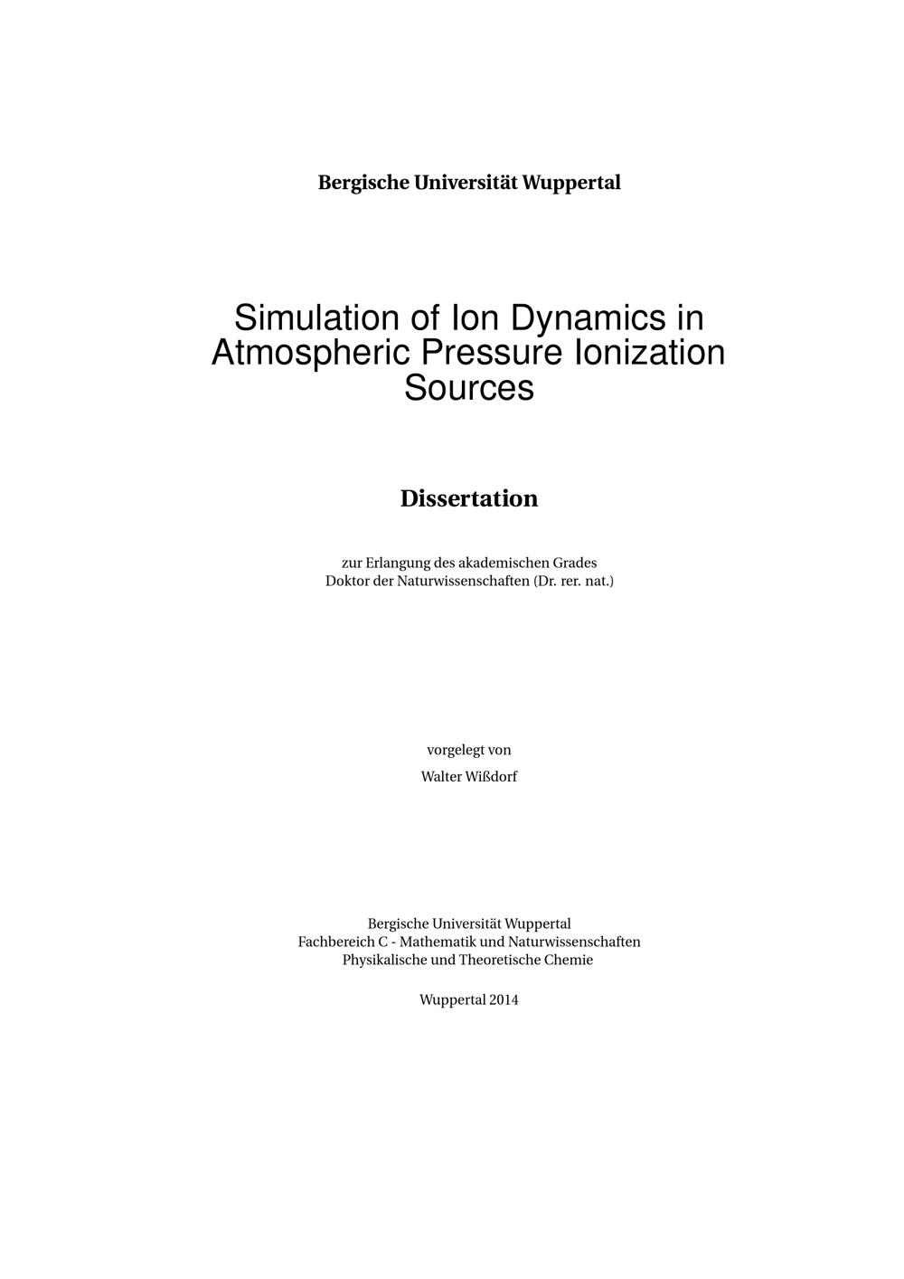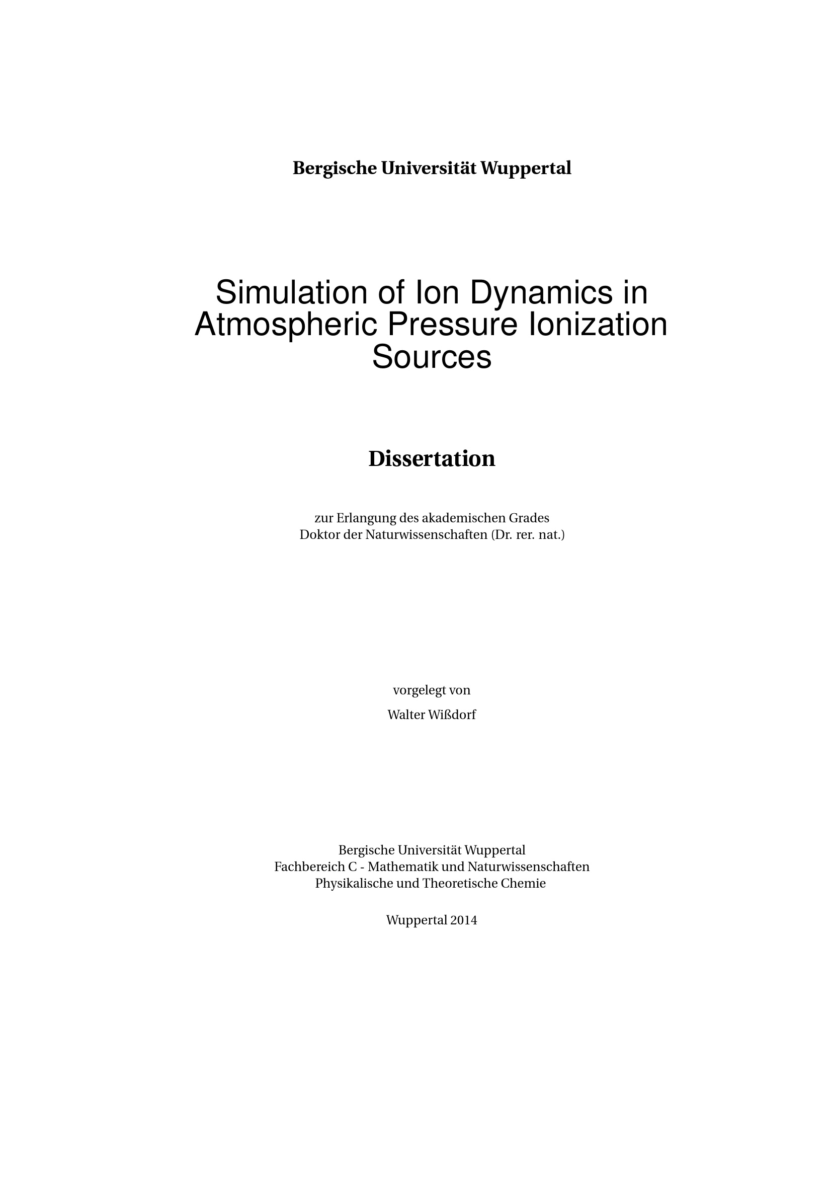 Simulation of ion dynamics in atmospheric pressure ionization sources / vorgelegt von Walter Wißdorf