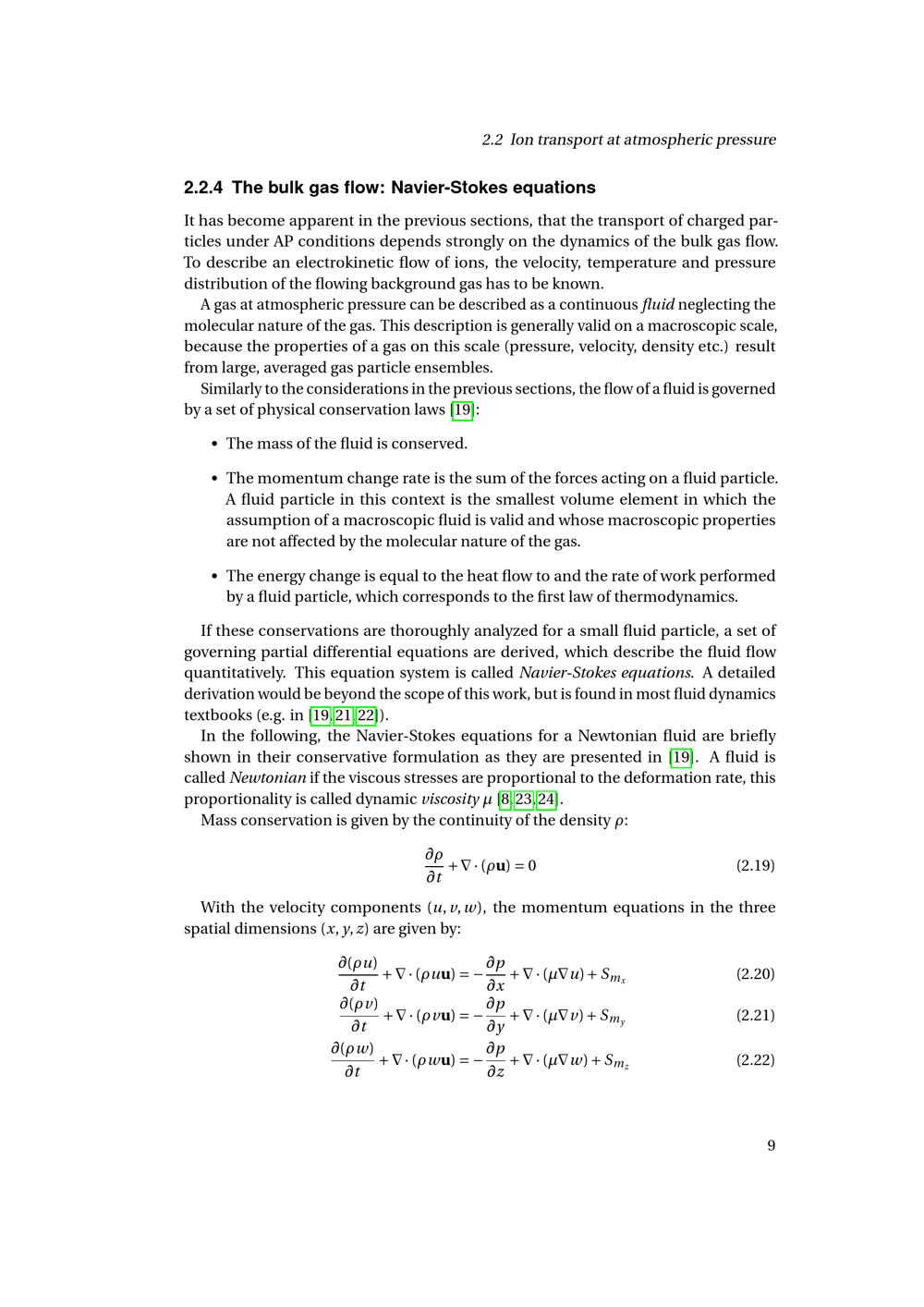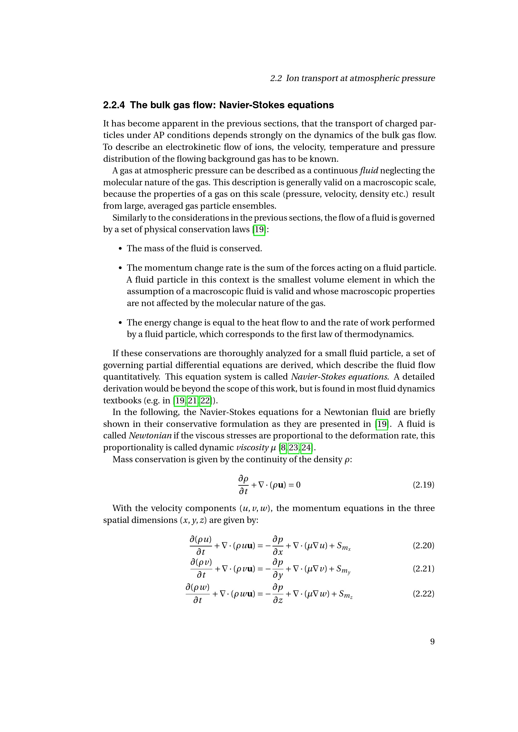 2.2.4 The bulk gas flow: Navier-Stokes equations