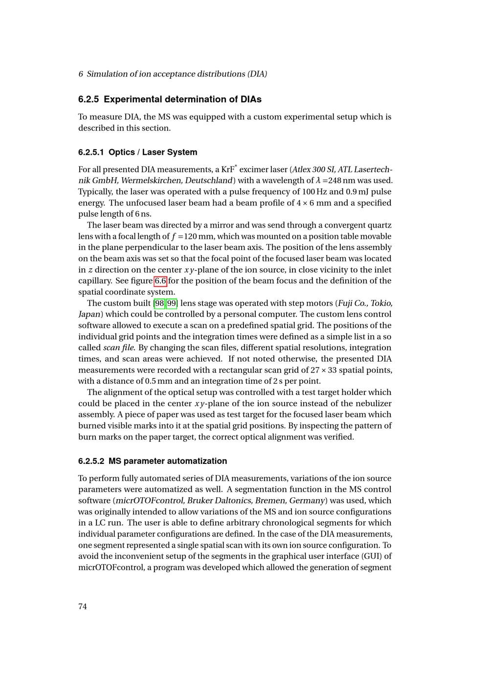 6 Simulation of ion acceptance distributions (DIA)