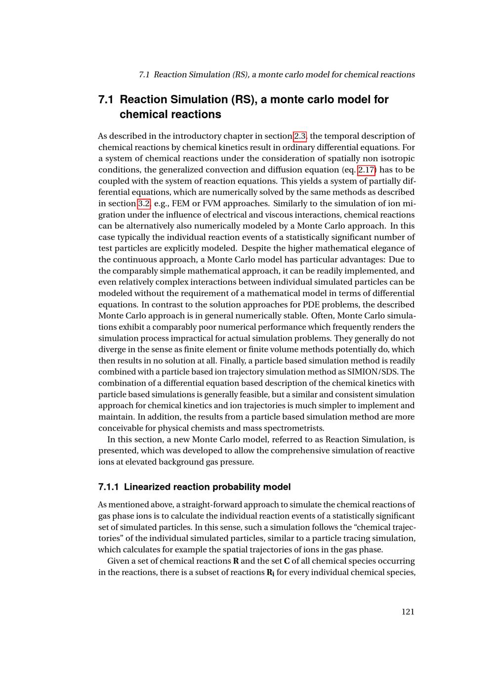 7.1 Reaction Simulation (RS), a monte carlo model for chemical reactions