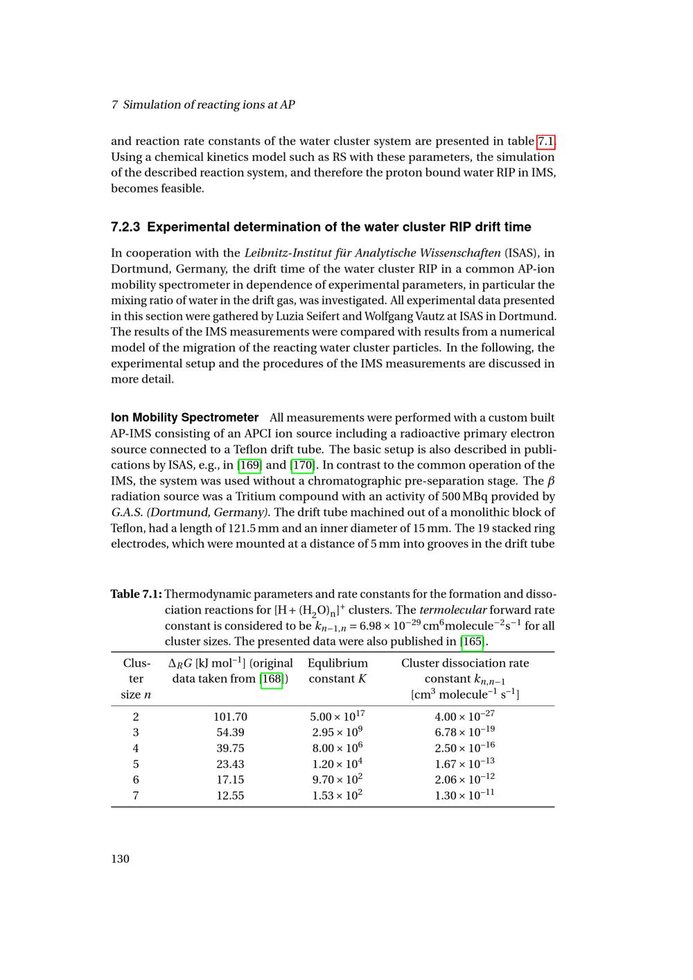7.2.3 Experimental determination of the water cluster RIP drift time