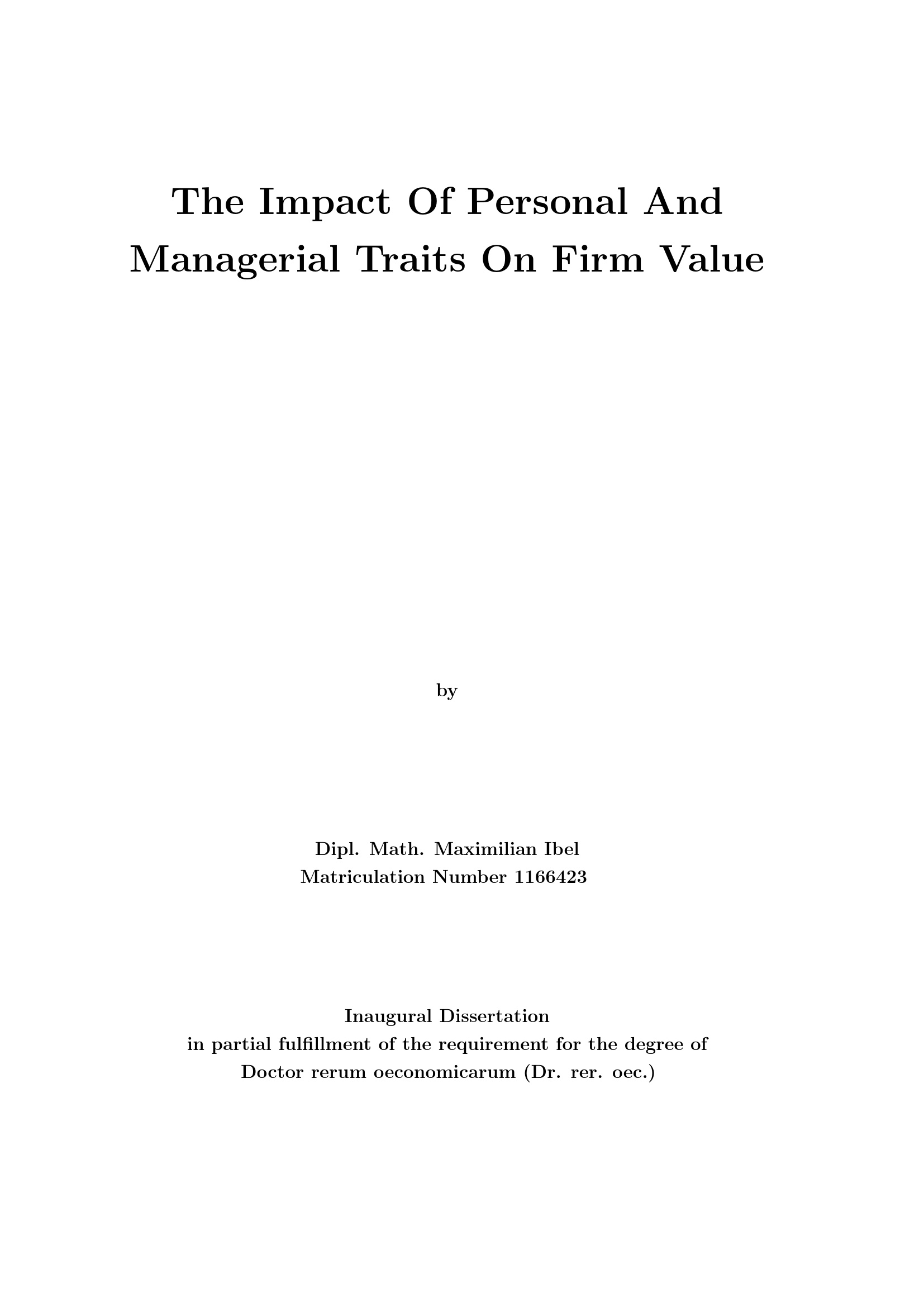 The impact of personal and managerial traits on firm value / by Maxmilian Ibel