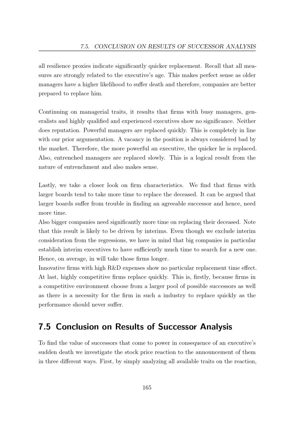 7.5 Conclusion on Results of Successor Analysis