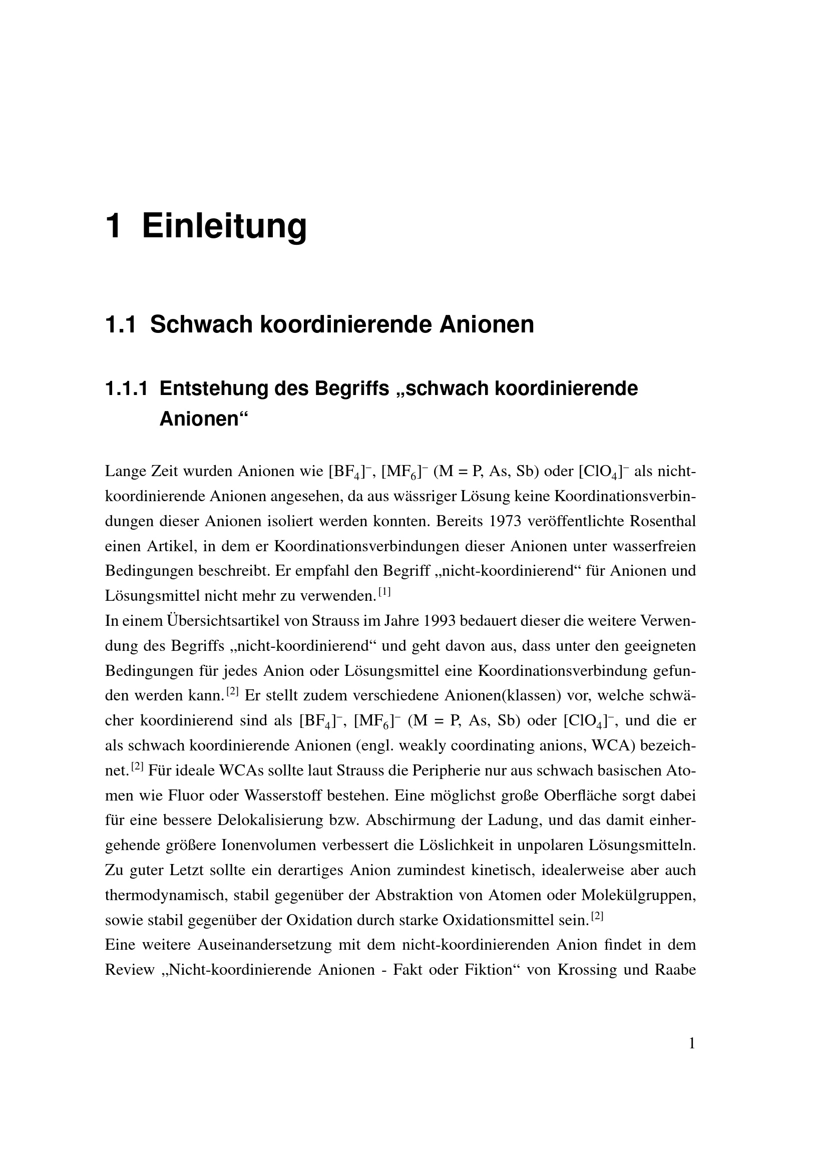 Entstehung des Begriffs „schwach koordinierende Anionen“