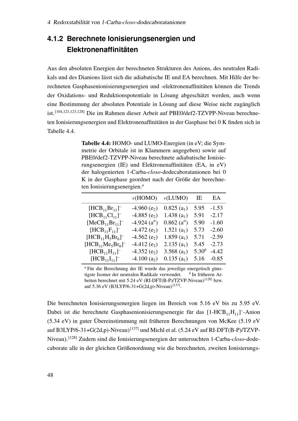 Quantenchemische Berechnung von Strukturen, Ionisierungsenergien und Elektronena[...]