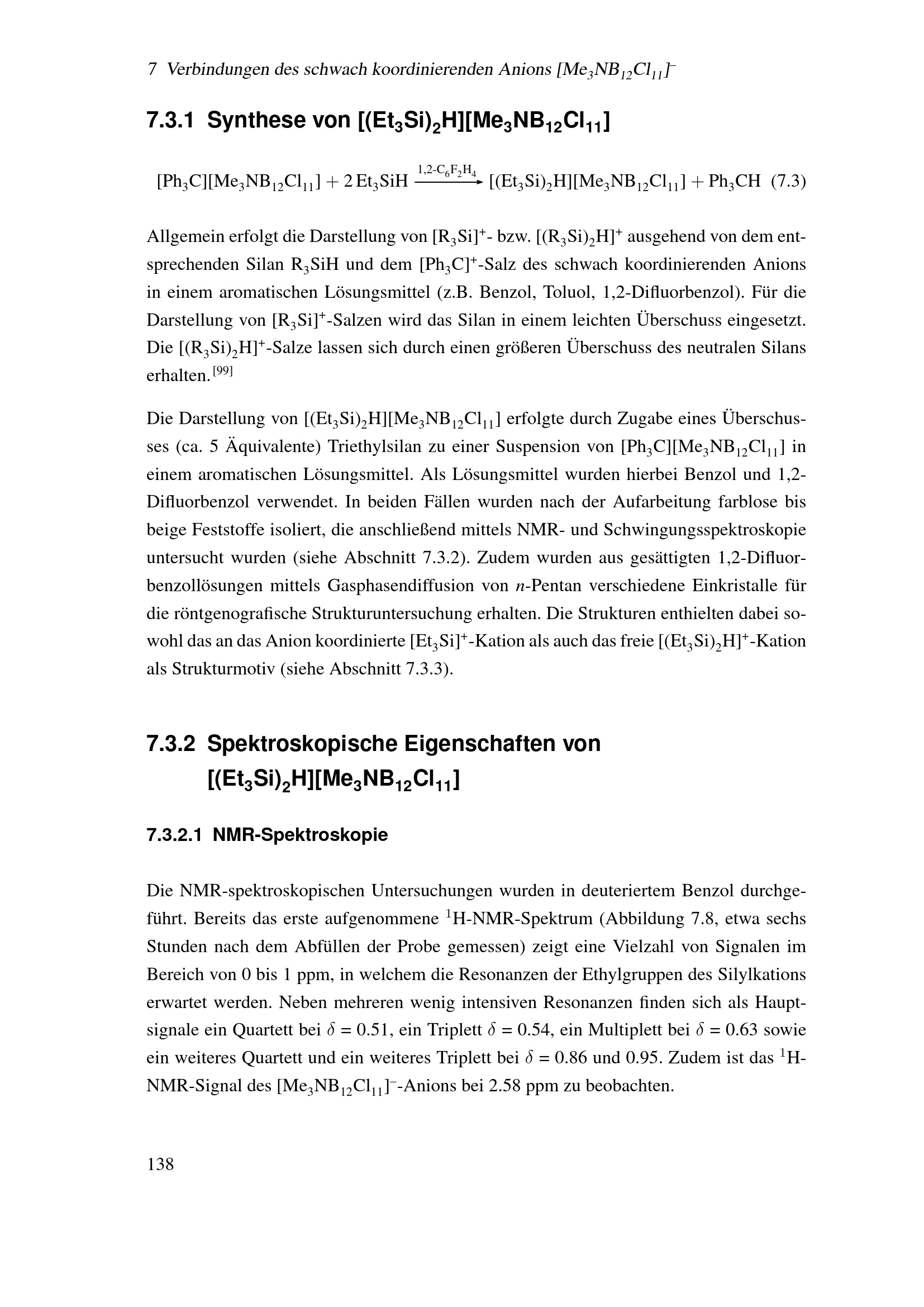Synthese und Eigenschaften von [(Et3Si)2H][Me3NB12Cl11]