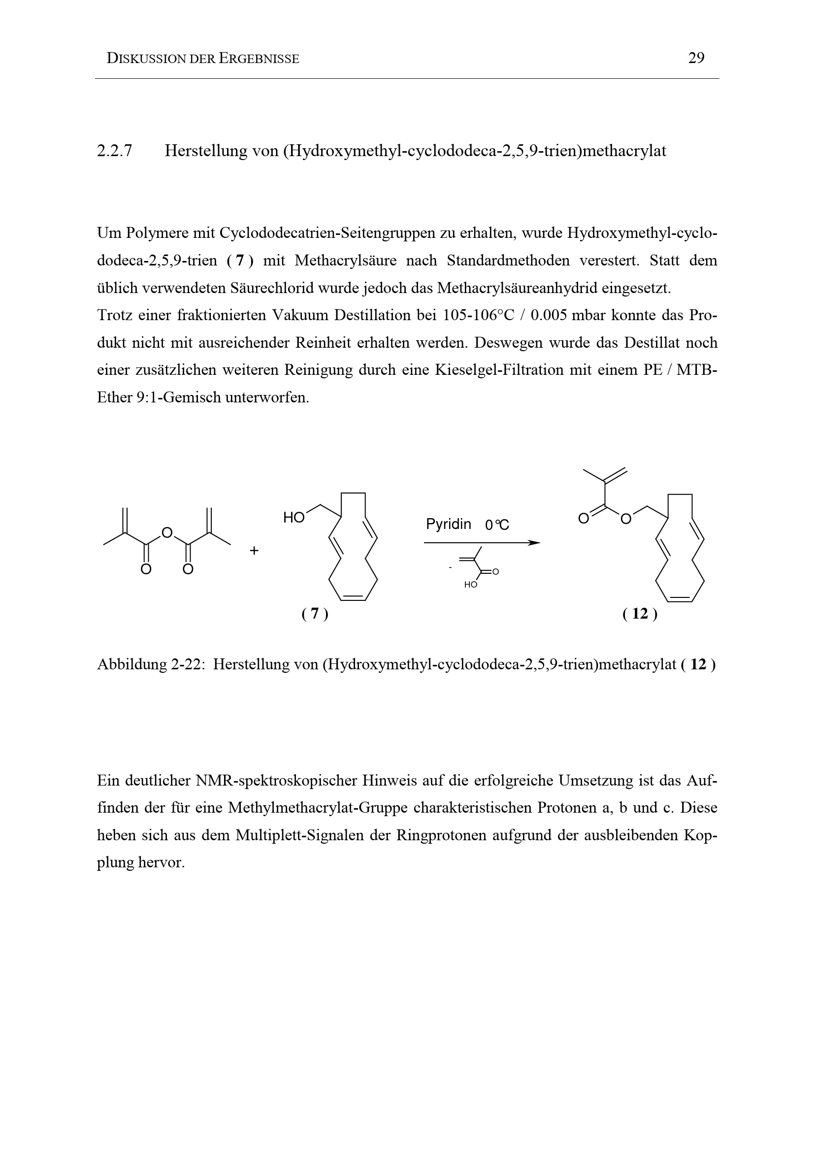 Herstellung von (Hydroxymethyl-cyclododeca-2,5,9-trien)methacrylat