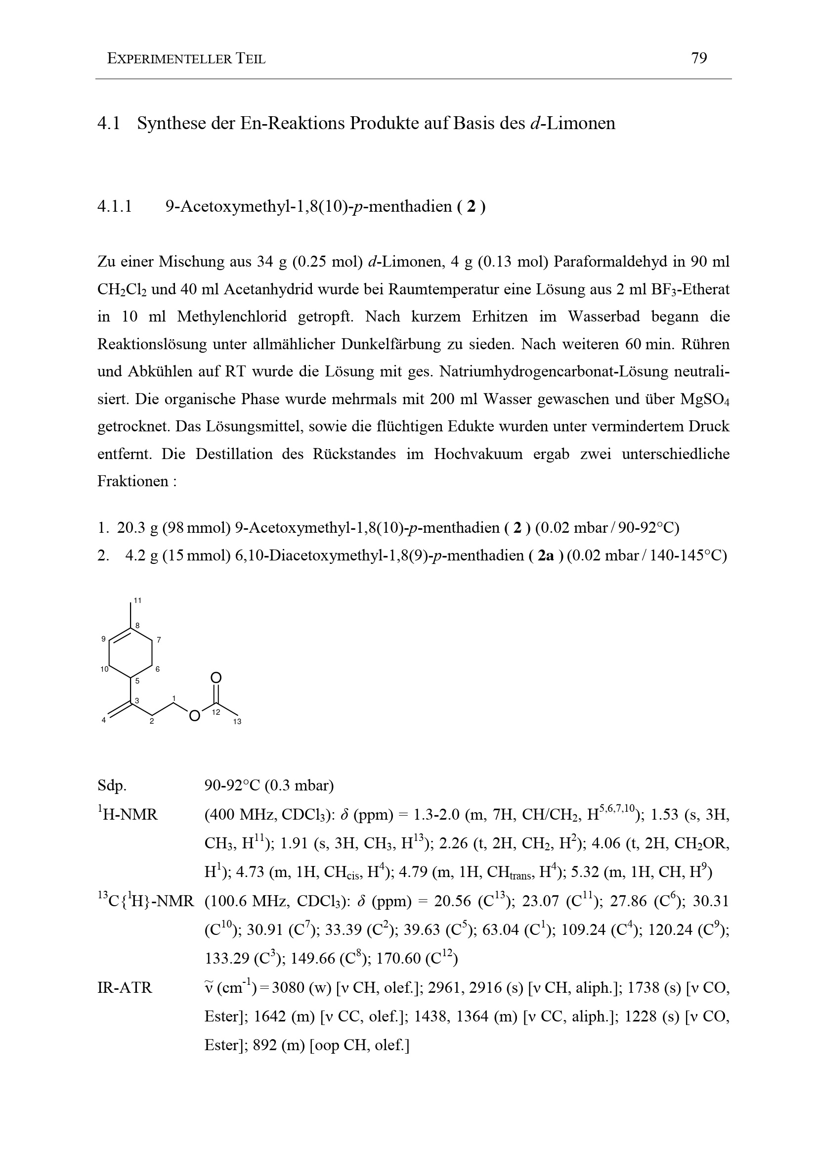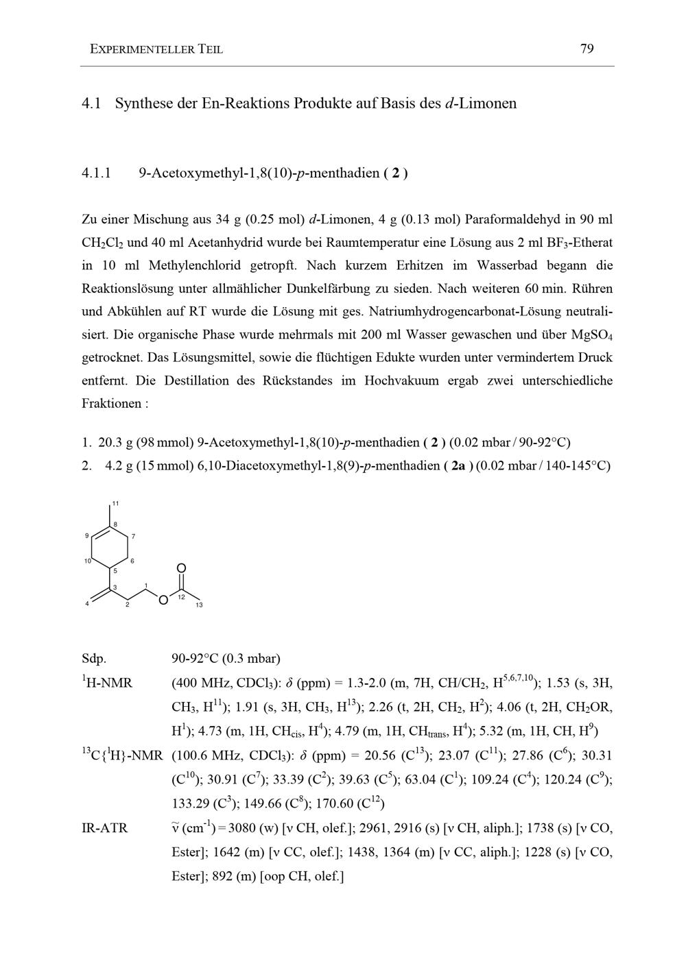 Synthese der En-Reaktions Produkte auf Basis des d-Limonen