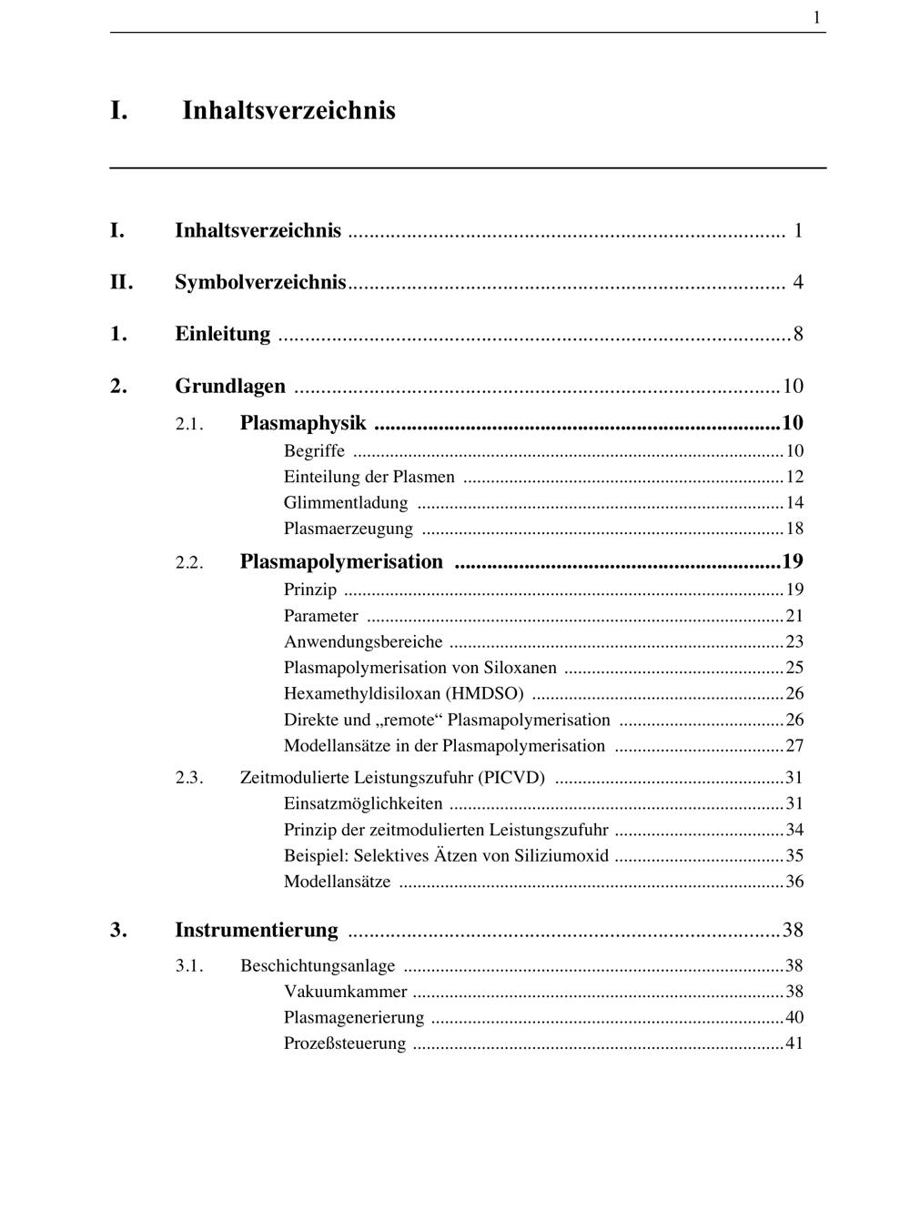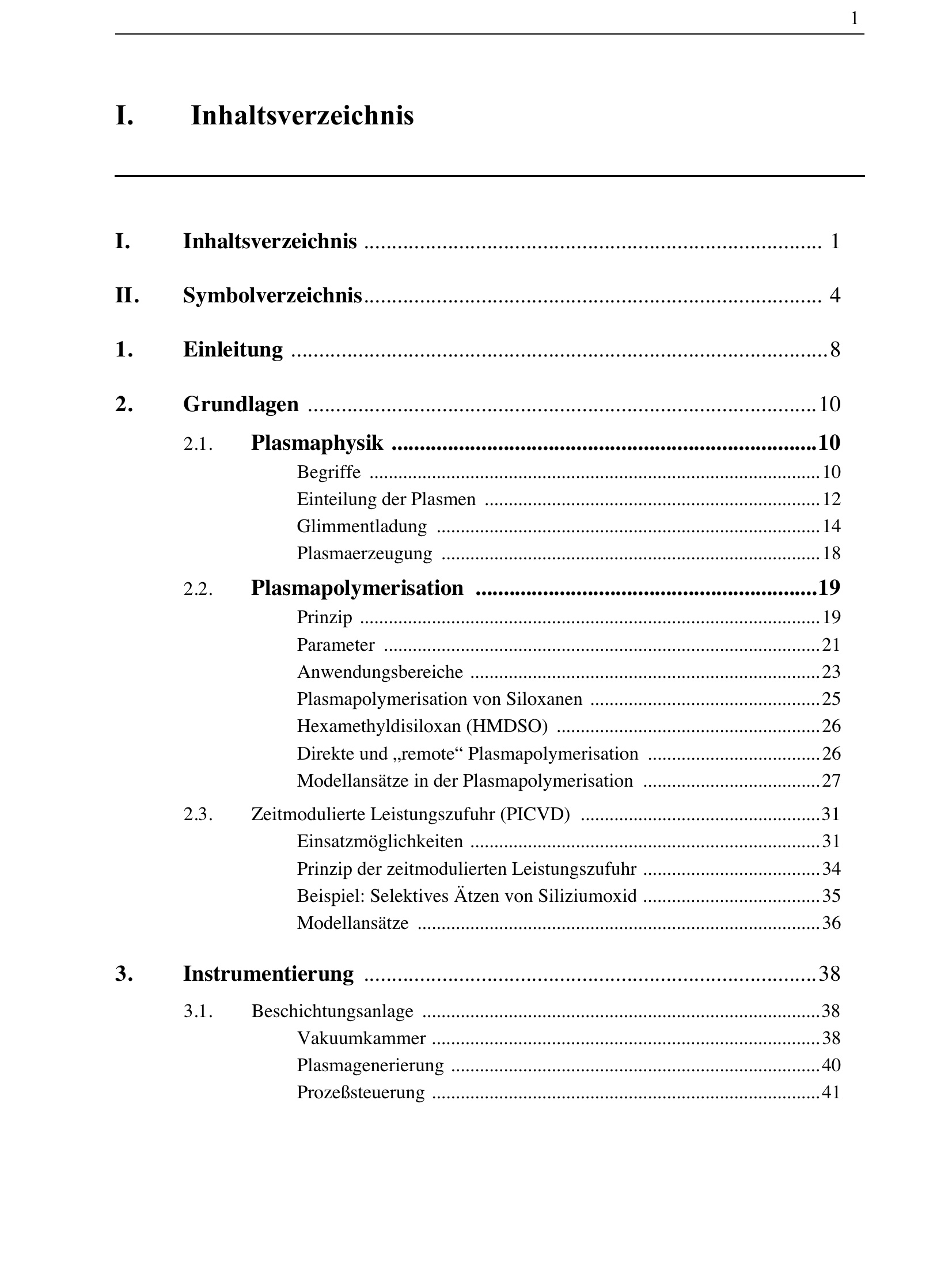 I. Inhaltsverzeichnis