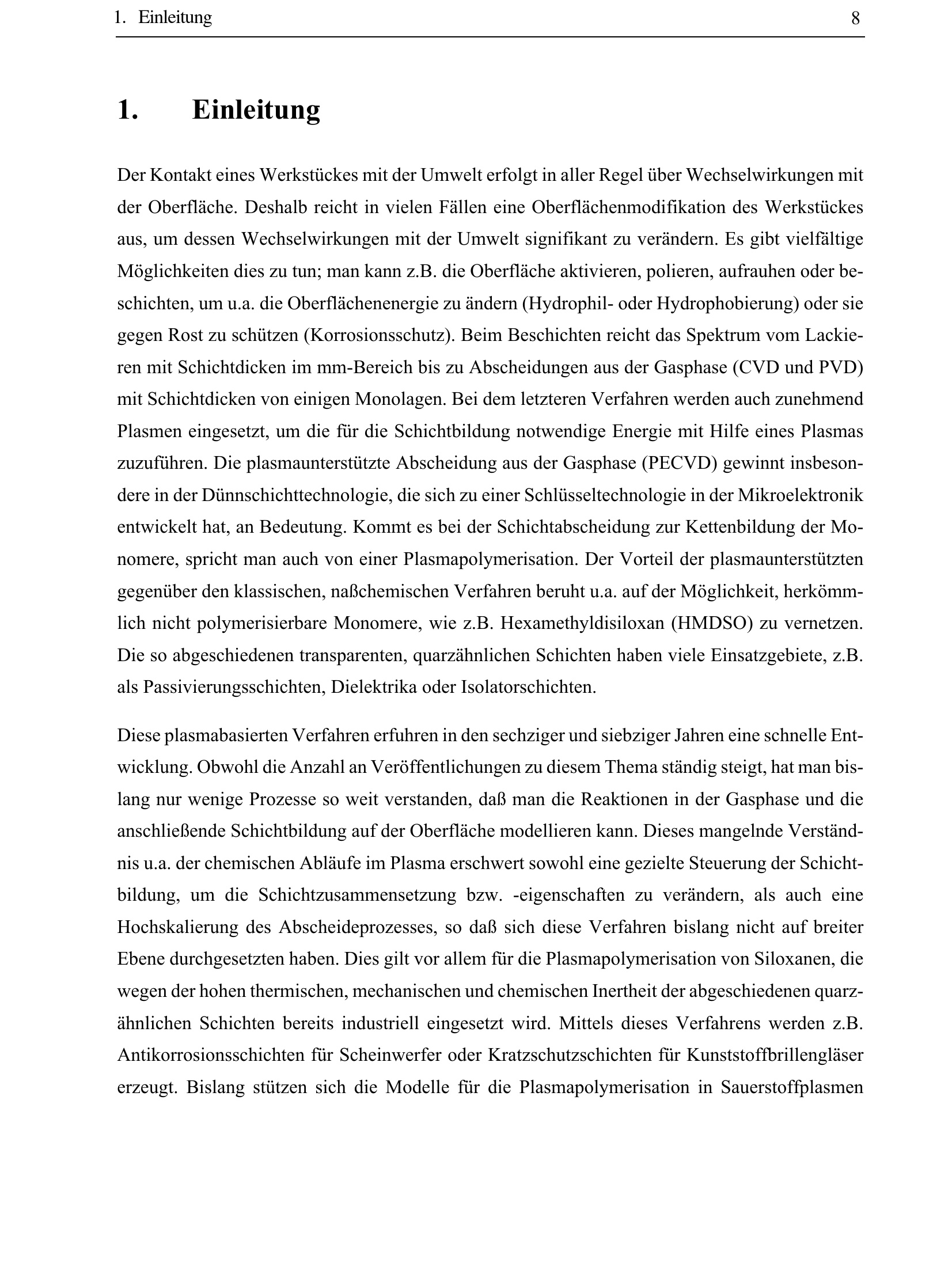 Plasmapolymerisation von Hexamethyldisiloxan zur Abscheidung von quarzähnlichen Schichten[...]