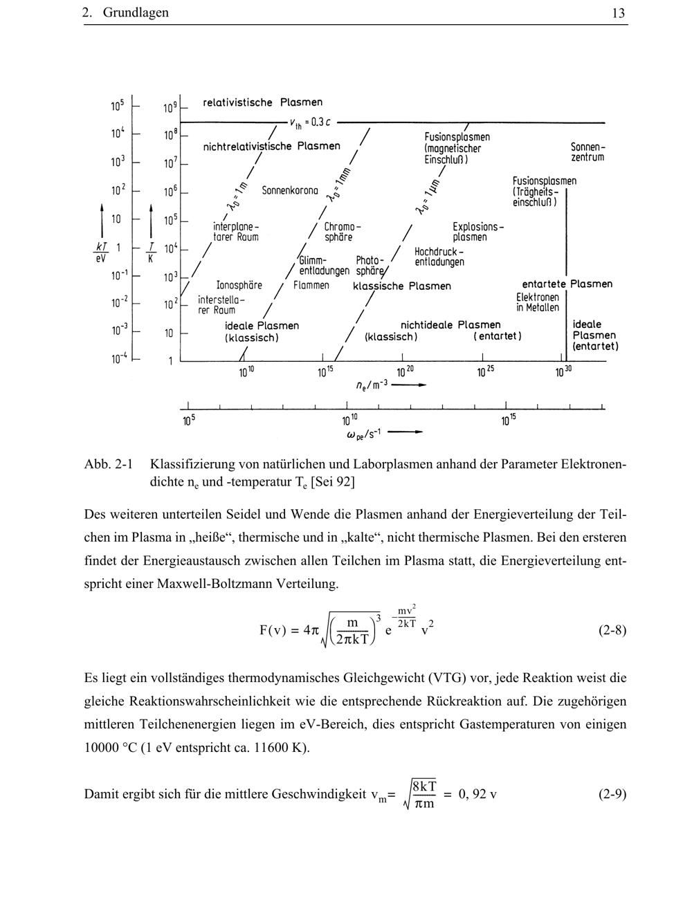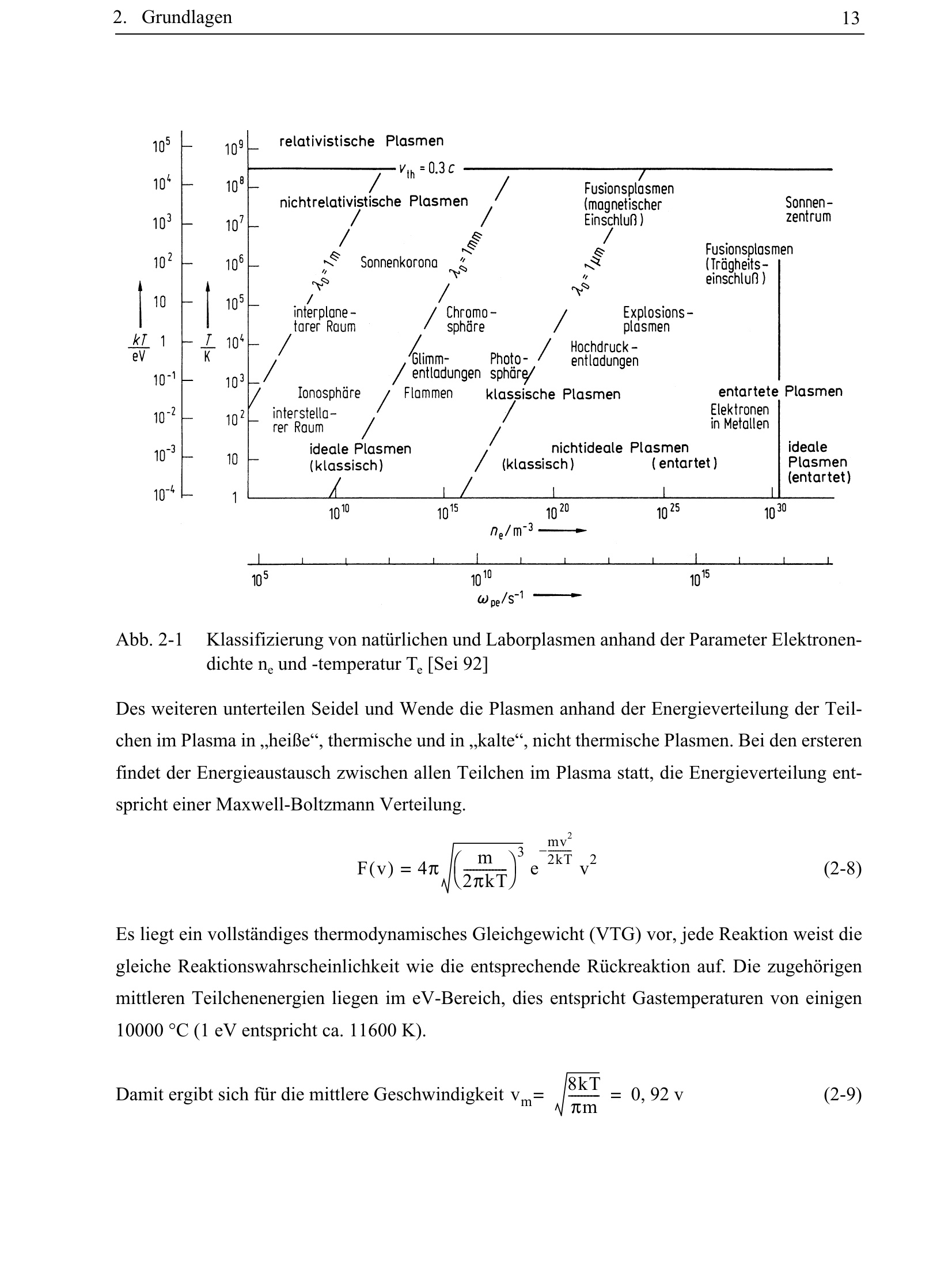 Abb. 2-1 Klassifizierung von natürlichen und Laborplasmen anhand der Parameter Elektronendichte[...]