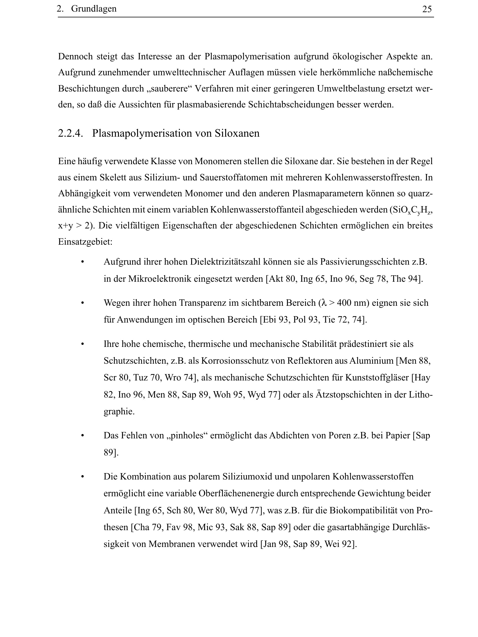 2.2.4. Plasmapolymerisation von Siloxanen