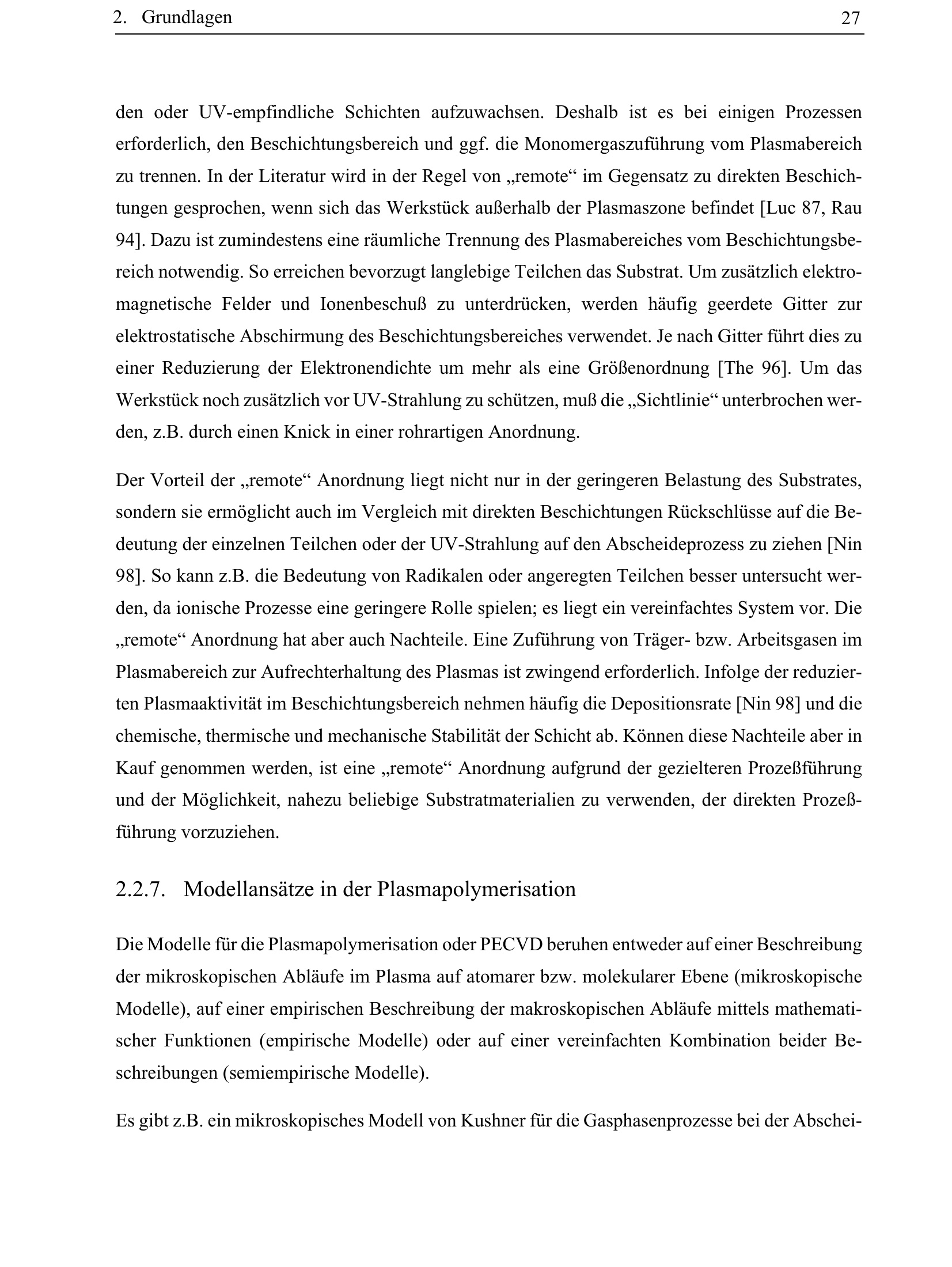 2.2.7. Modellansätze in der Plasmapolymerisation