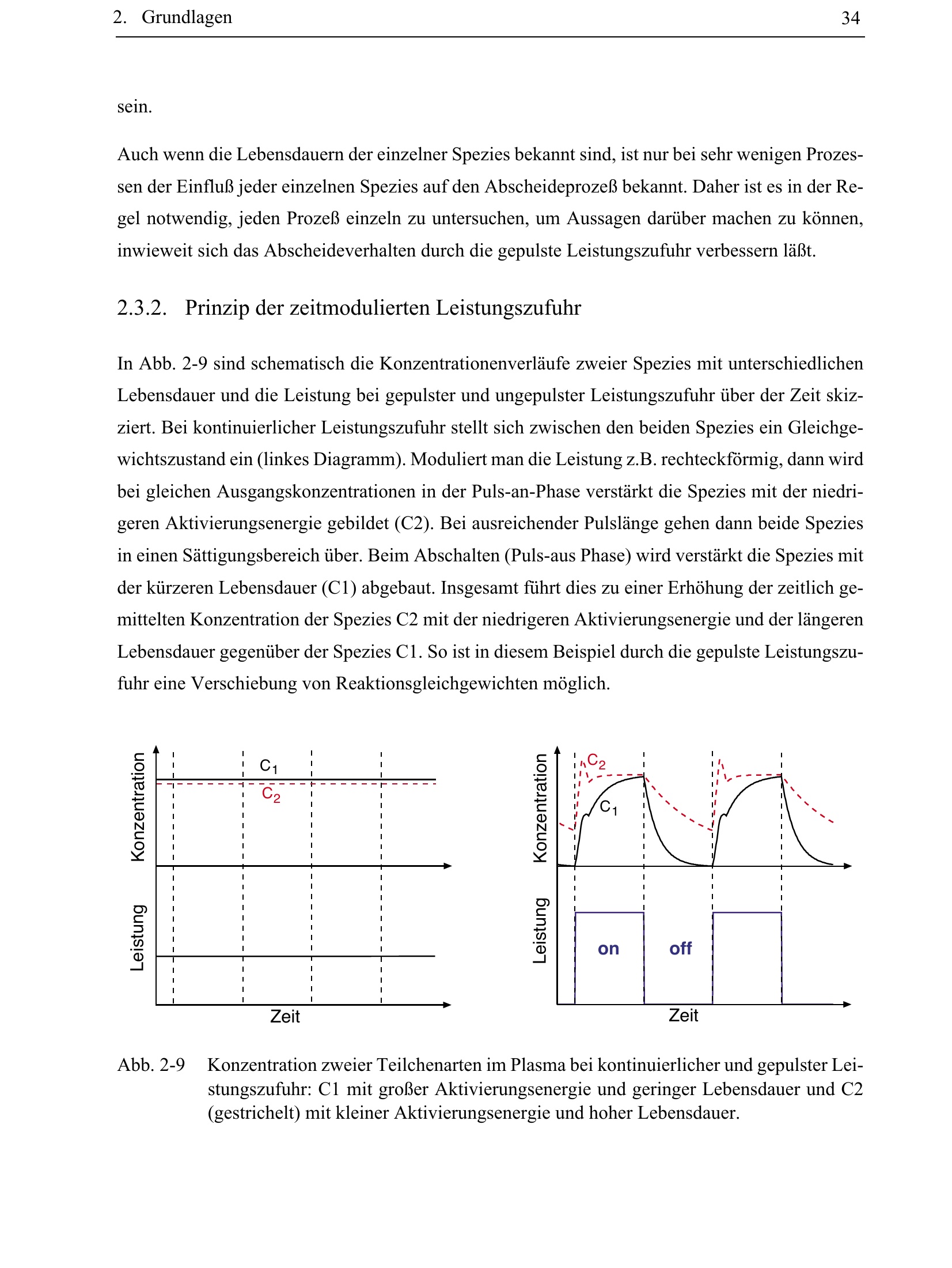 Abb. 2-9 Konzentration zweier Teilchenarten im Plasma bei kontinuierlicher und gepulster[...]
