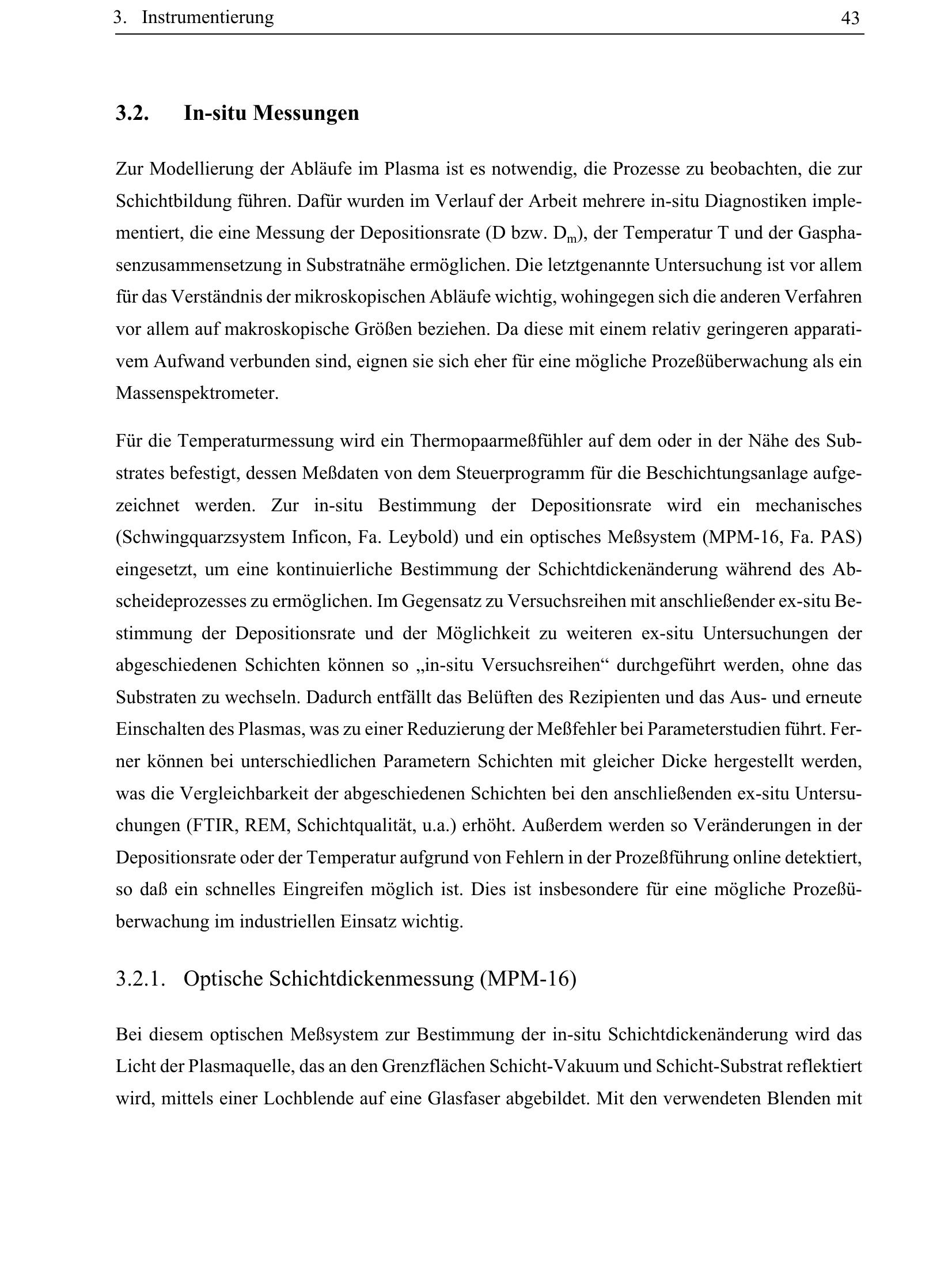 Plasmapolymerisation von Hexamethyldisiloxan zur Abscheidung von quarzähnlichen Schichten[...]
