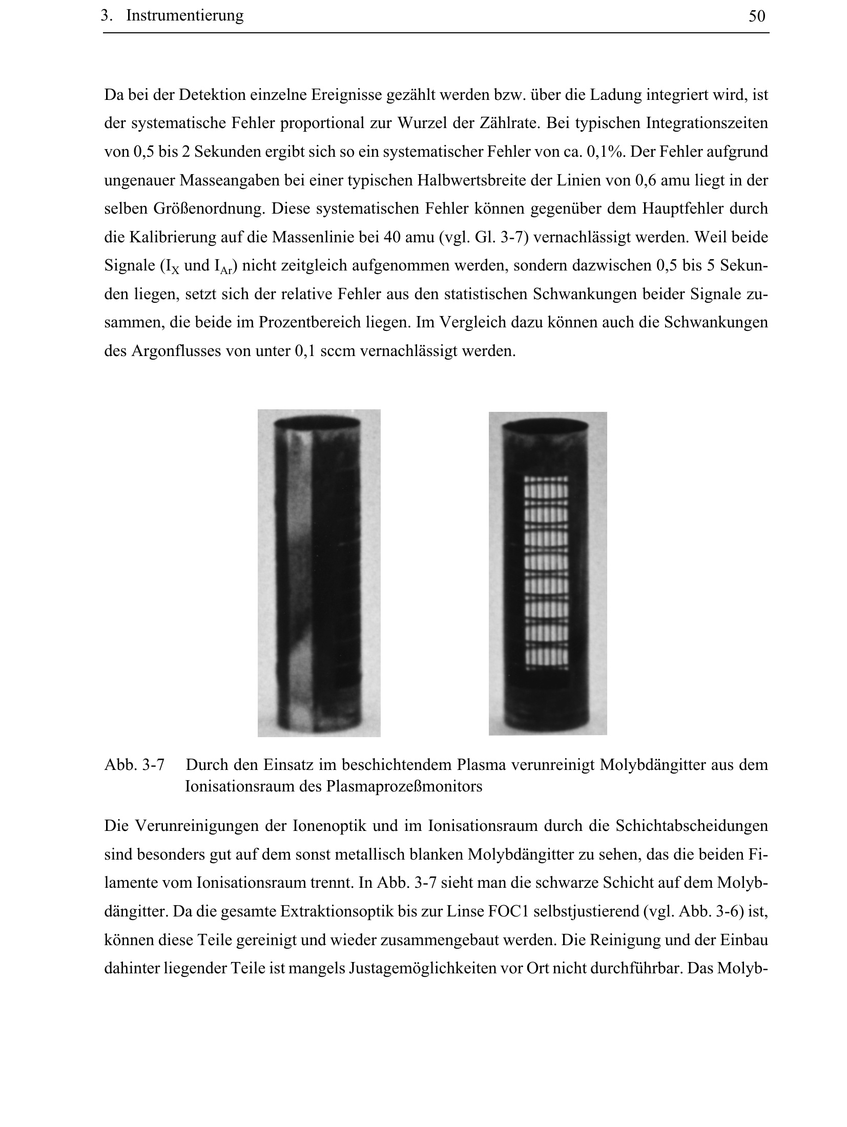 Abb. 3-7 Durch den Einsatz im beschichtendem Plasma verunreinigt Molybdängitter aus[...]