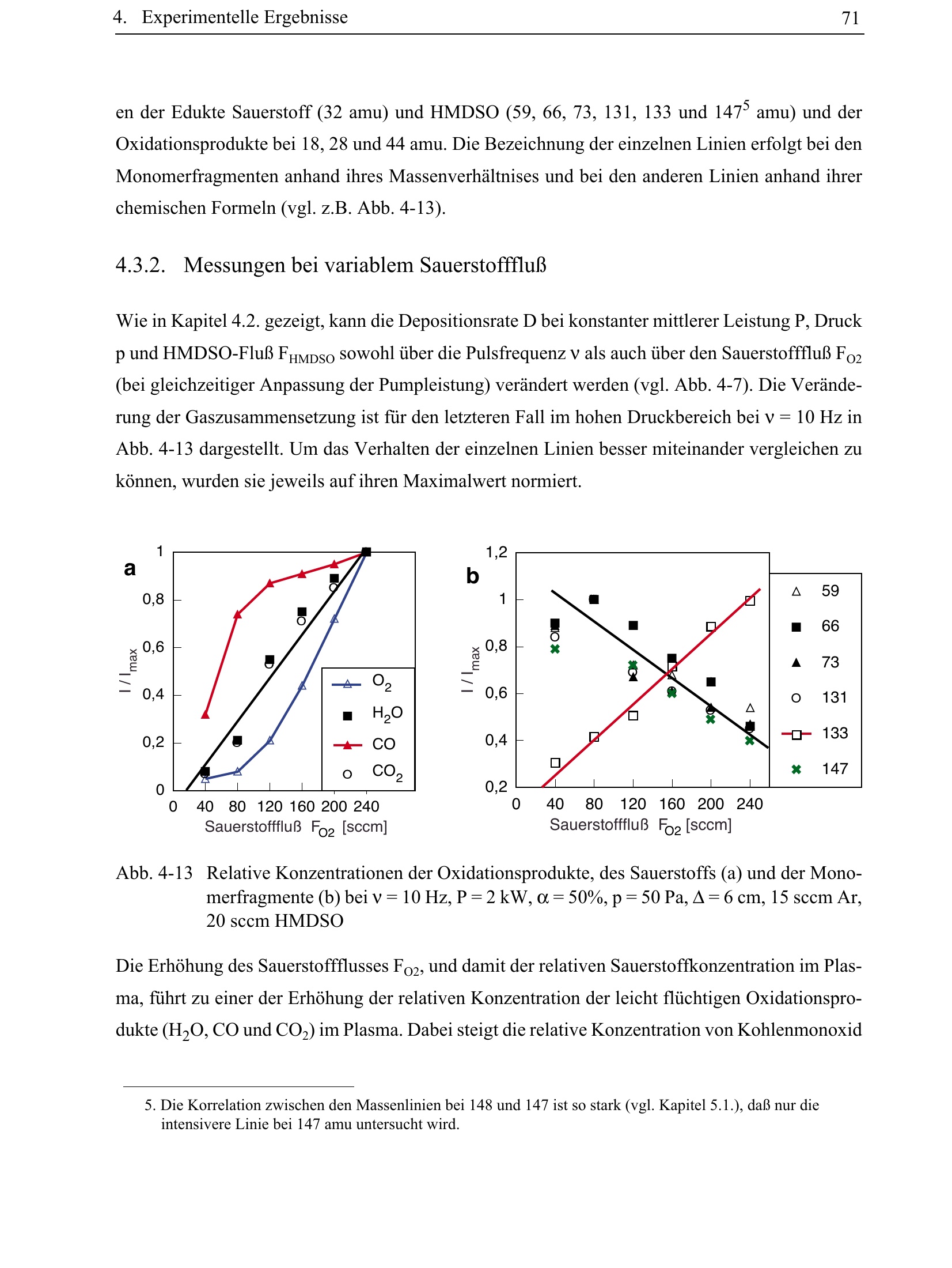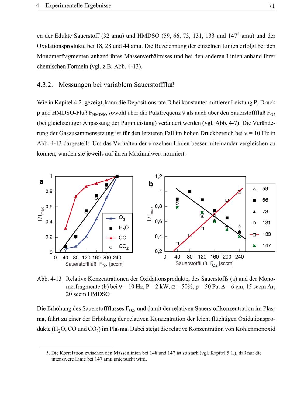 Abb. 4-13 Relative Konzentrationen der Oxidationsprodukte, des Sauerstoffs (a) und[...]