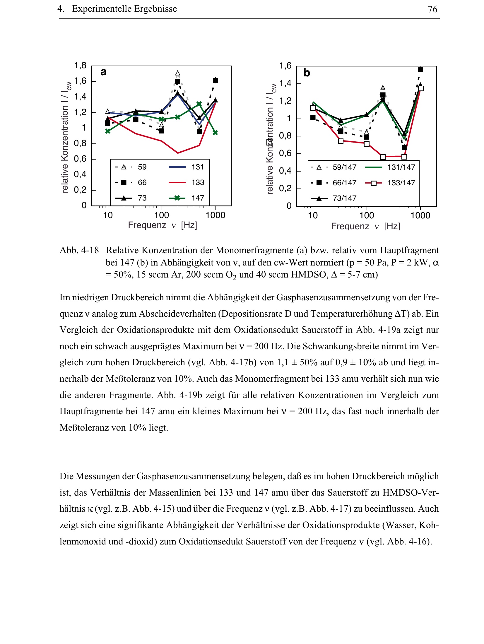 Abb. 4-18 Relative Konzentration der Monomerfragmente (a) bzw. relativ vom Hauptfragment[...]
