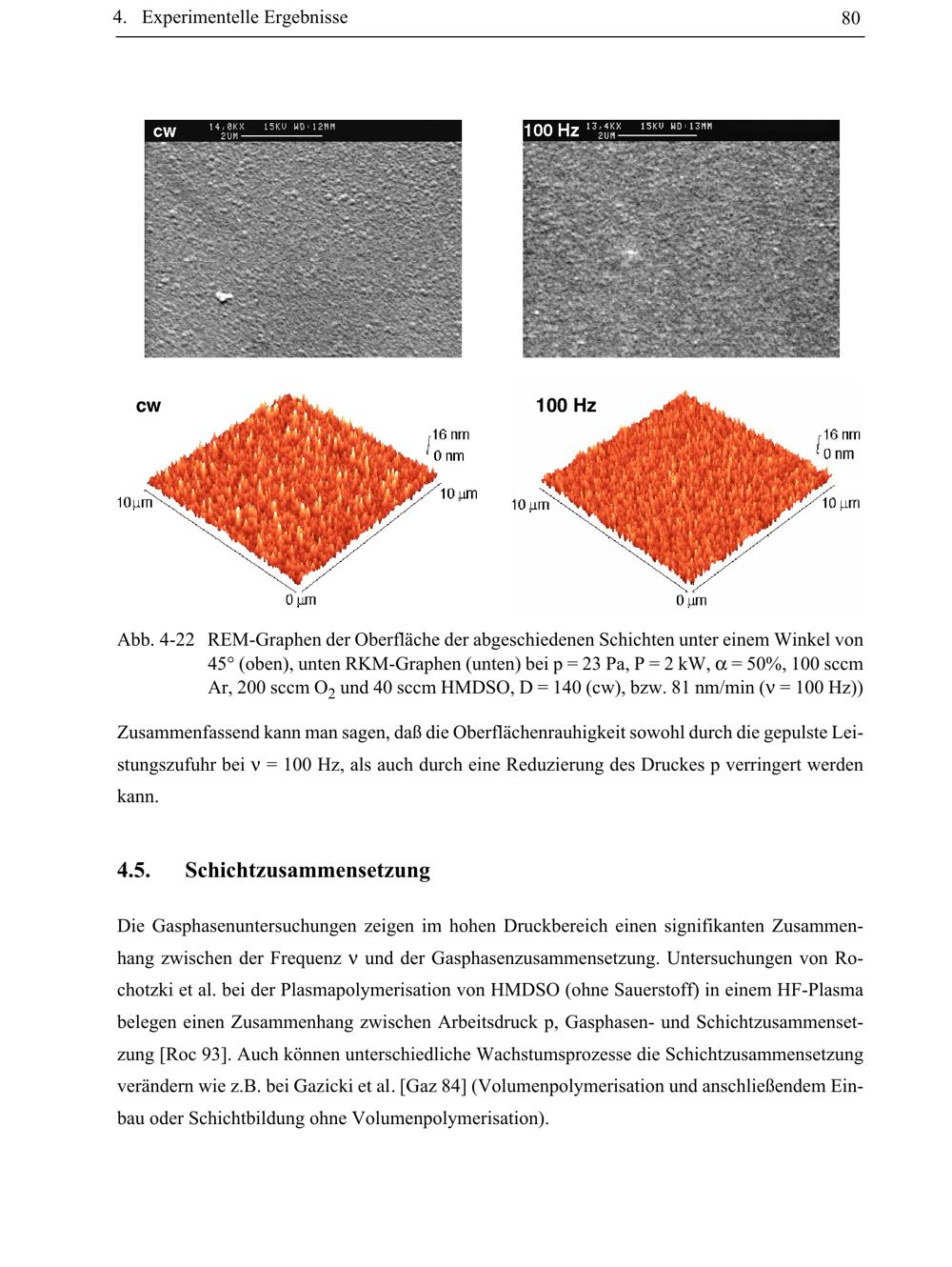 Abb. 4-22 REM-Graphen der Oberfläche der abgeschiedenen Schichten unter einem Winkel[...]