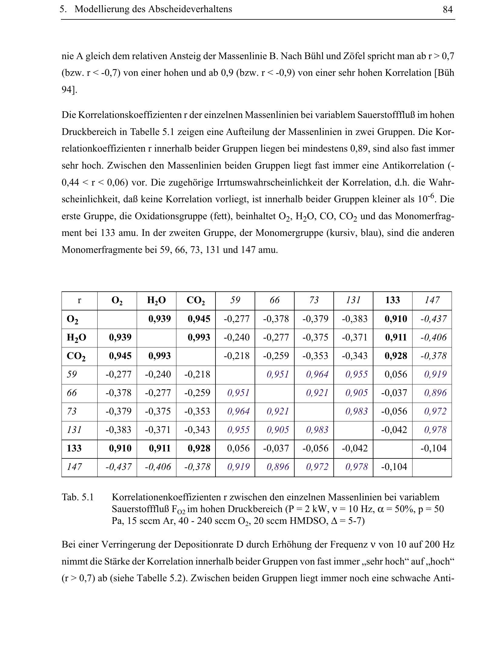 Tab. 5.1 Korrelationenkoeffizienten r zwischen den einzelnen Massenlinien bei variablem[...]