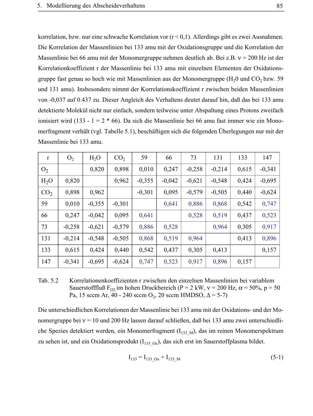 Tab. 5.2 Korrelationenkoeffizienten r zwischen den einzelnen Massenlinien bei variablem[...]