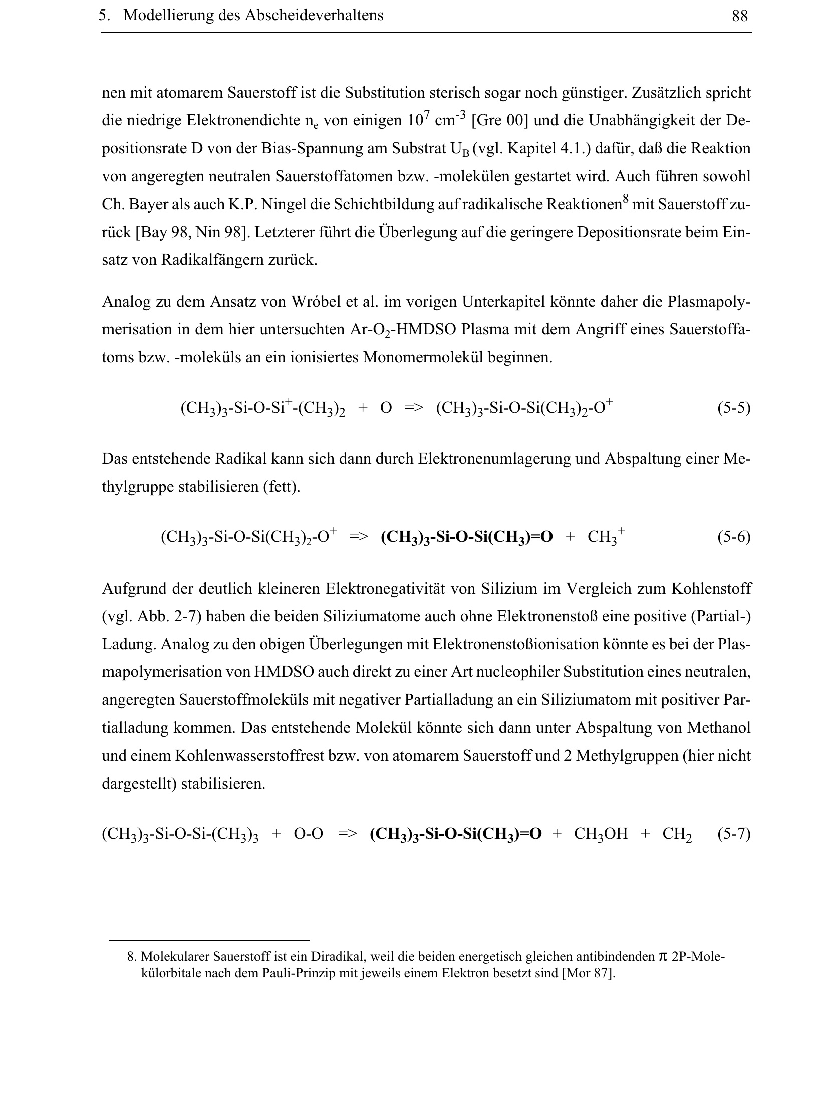 (CH3)3-Si-O-Si+-(CH3)2 + O => (CH3)3-Si-O-Si(CH3)2-O+ (5-5)