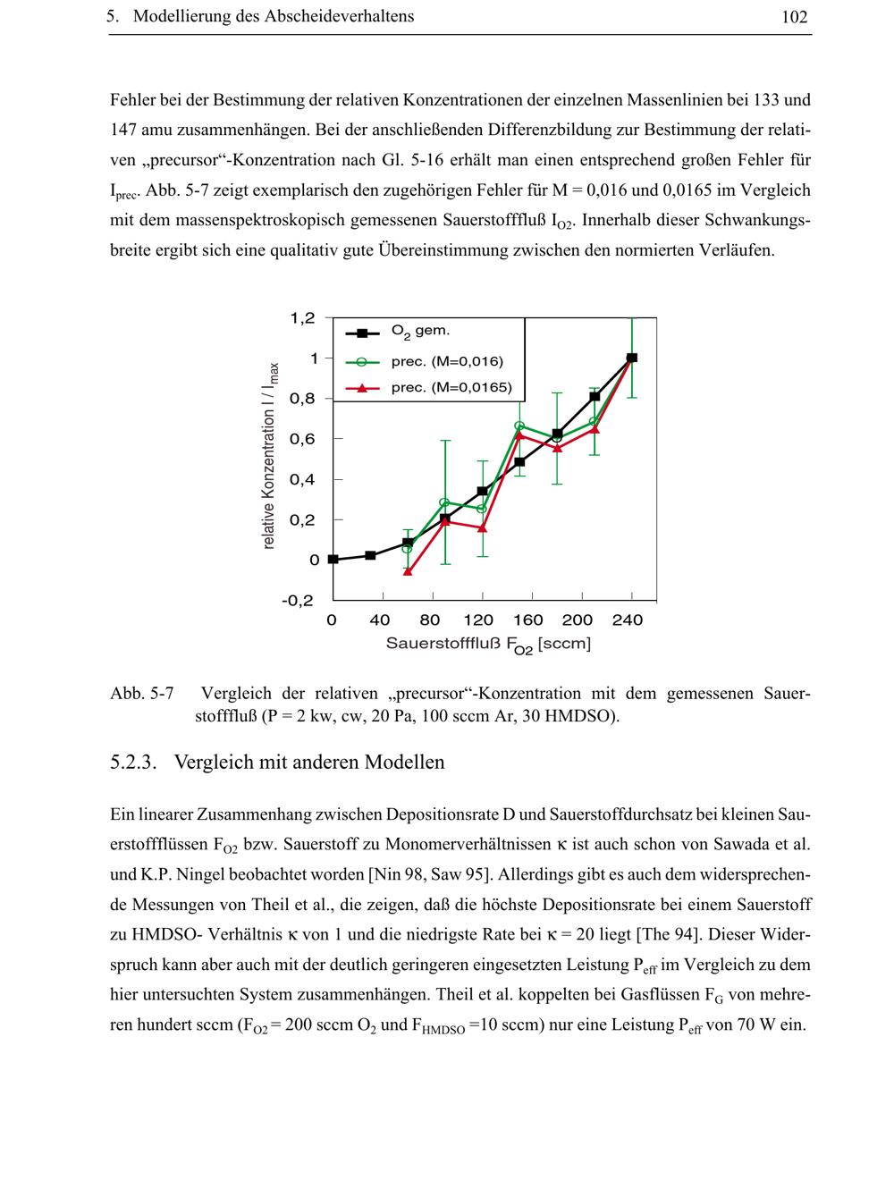 Abb. 5-7 Vergleich der relativen „precursor“-Konzentration mit dem gemessenen Sauerstofffluß[...]