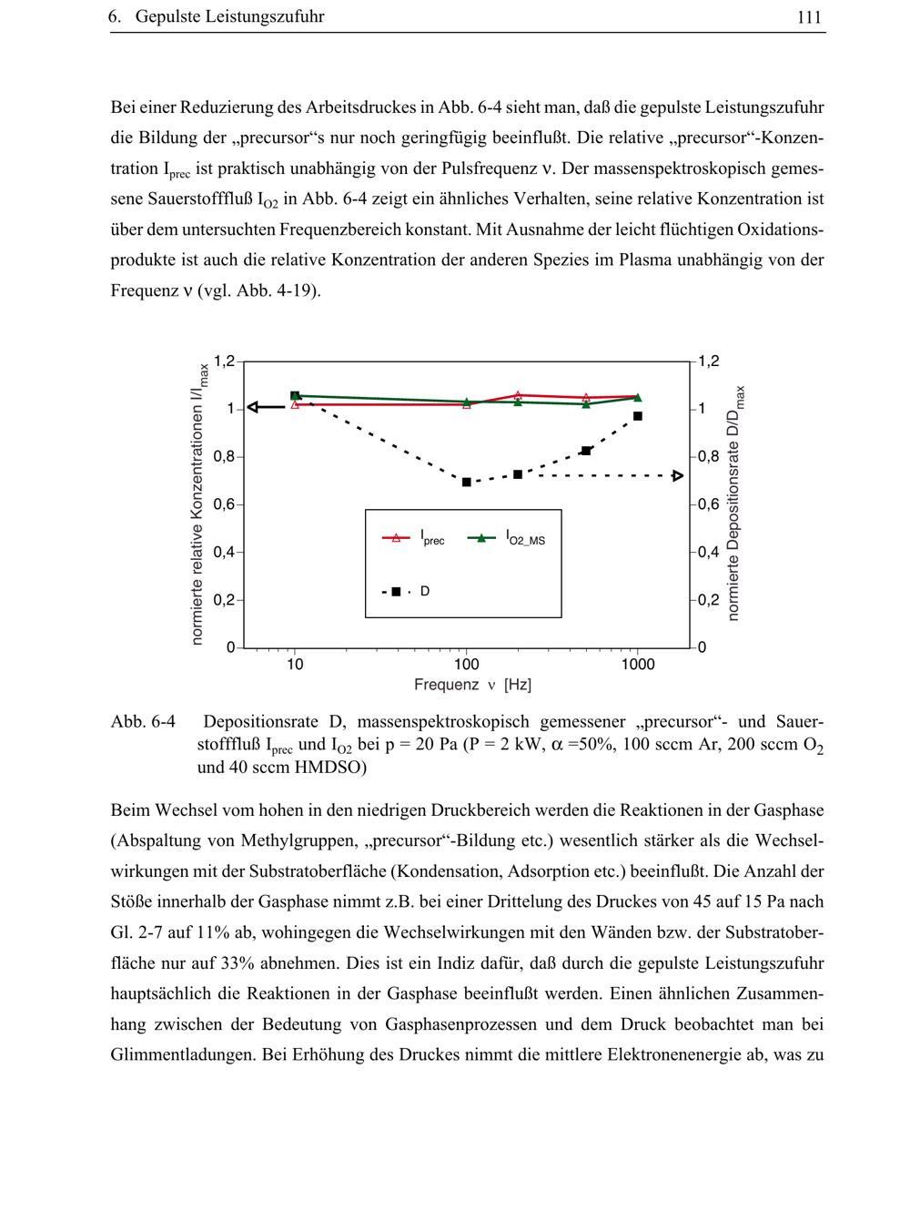 Abb. 6-4 Depositionsrate D, massenspektroskopisch gemessener „precursor“- und Sauerstofffluß[...]