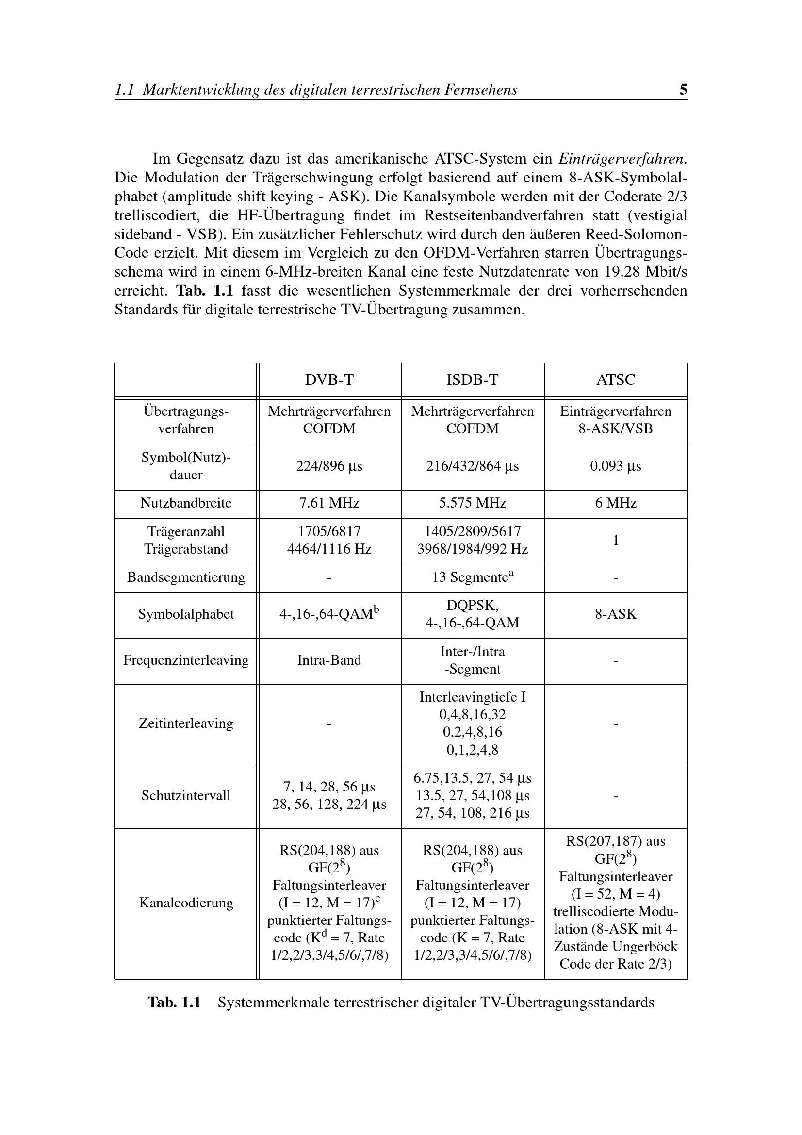 Tab. 1.1 Systemmerkmale terrestrischer digitaler TV-Übertragungsstandards