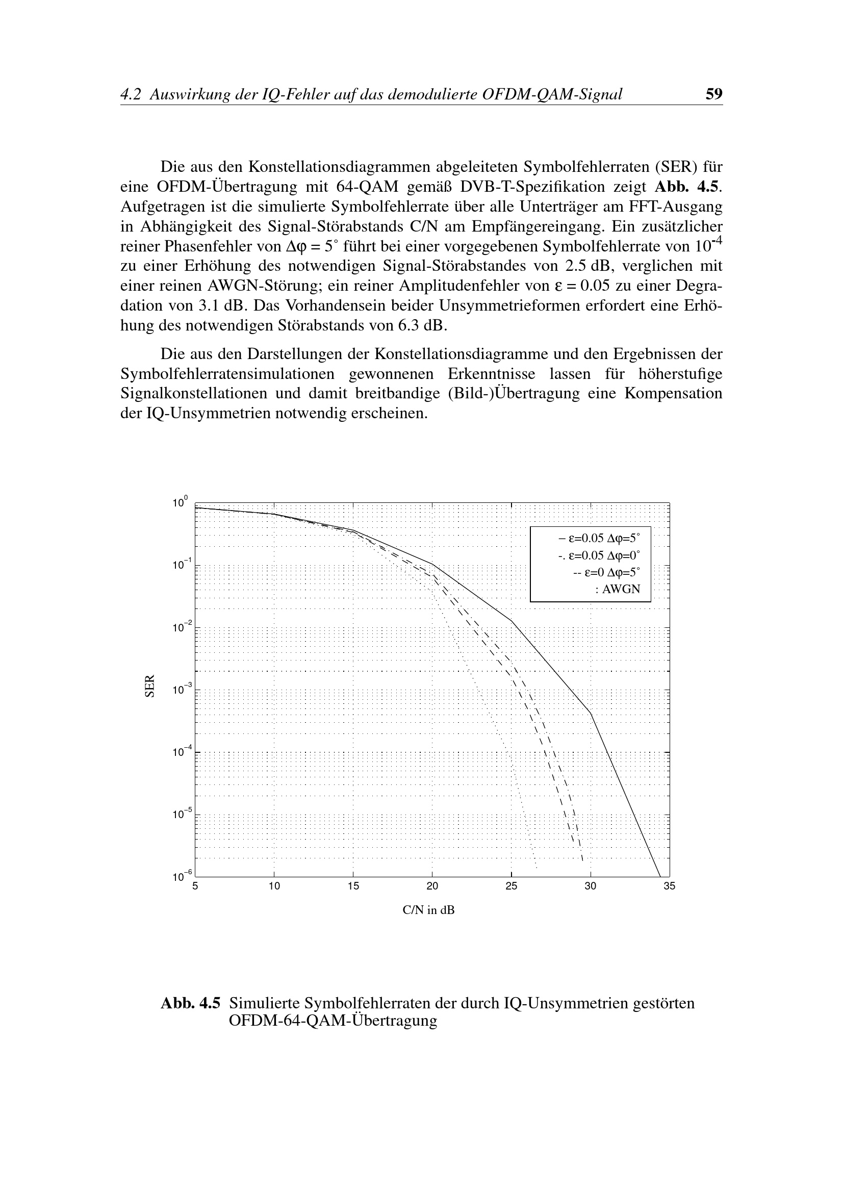 Abb. 4.5 Simulierte Symbolfehlerraten der durch IQ-Unsymmetrien gestörten OFDM-6[...]