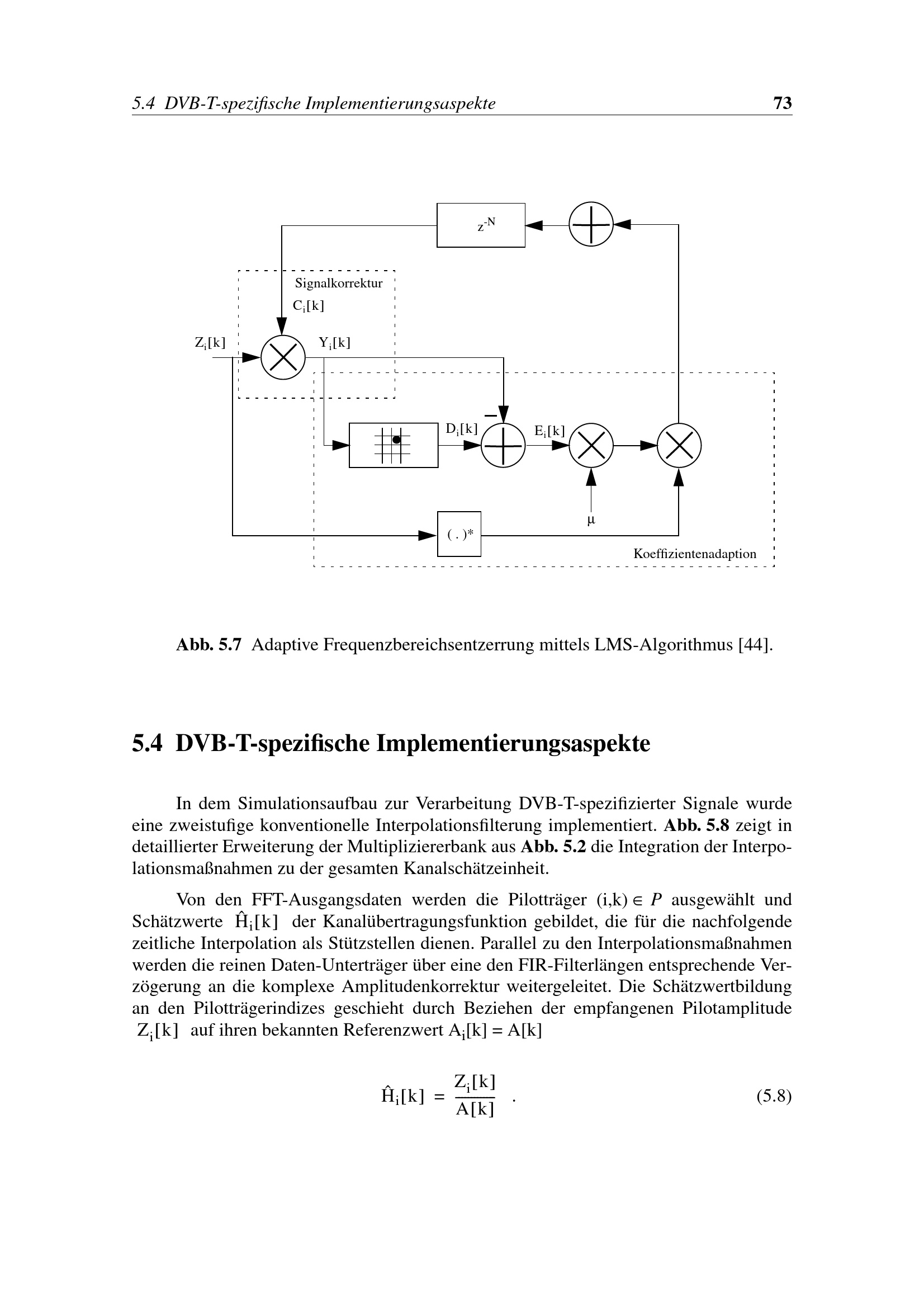 Abb. 5.7 Adaptive Frequenzbereichsentzerrung mittels LMS-Algorithmus [44].