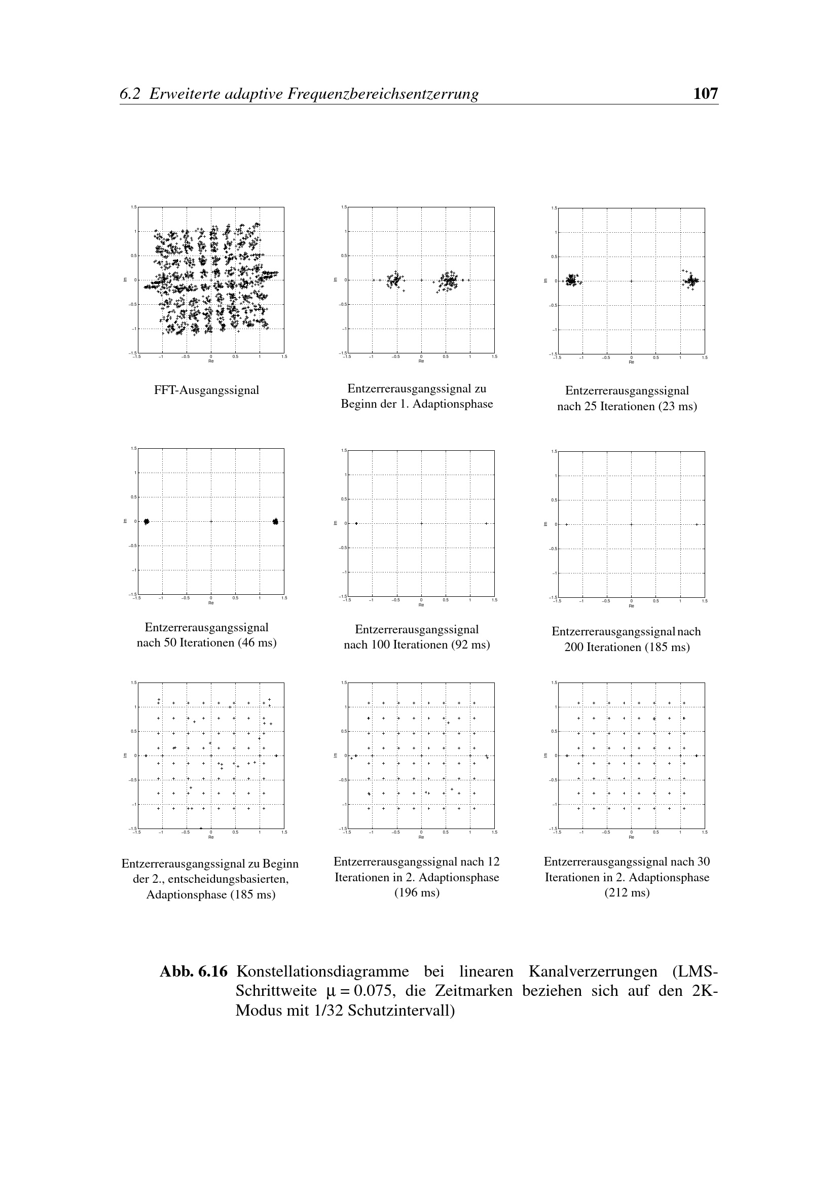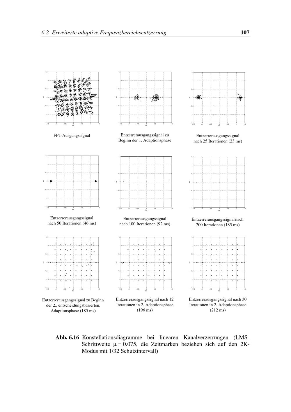Abb. 6.16 Konstellationsdiagramme bei linearen Kanalverzerrungen (LMS- Schrittweite[...]