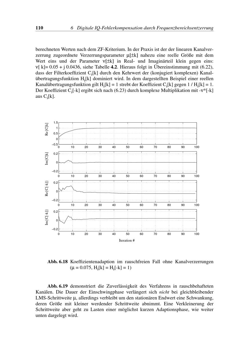 Abb. 6.18 Koeffizientenadaption im rauschfreien Fall ohne Kanalverzerrungen (m=0.075,[...]