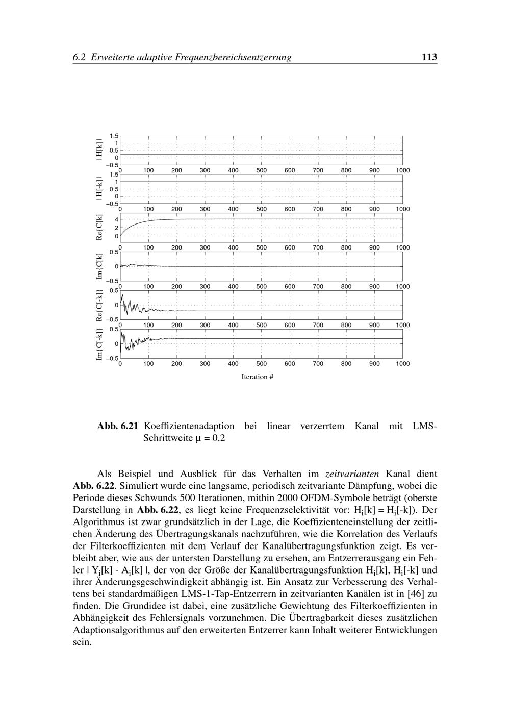 Abb. 6.21 Koeffizientenadaption bei linear verzerrtem Kanal mit LMS- Schrittweite[...]