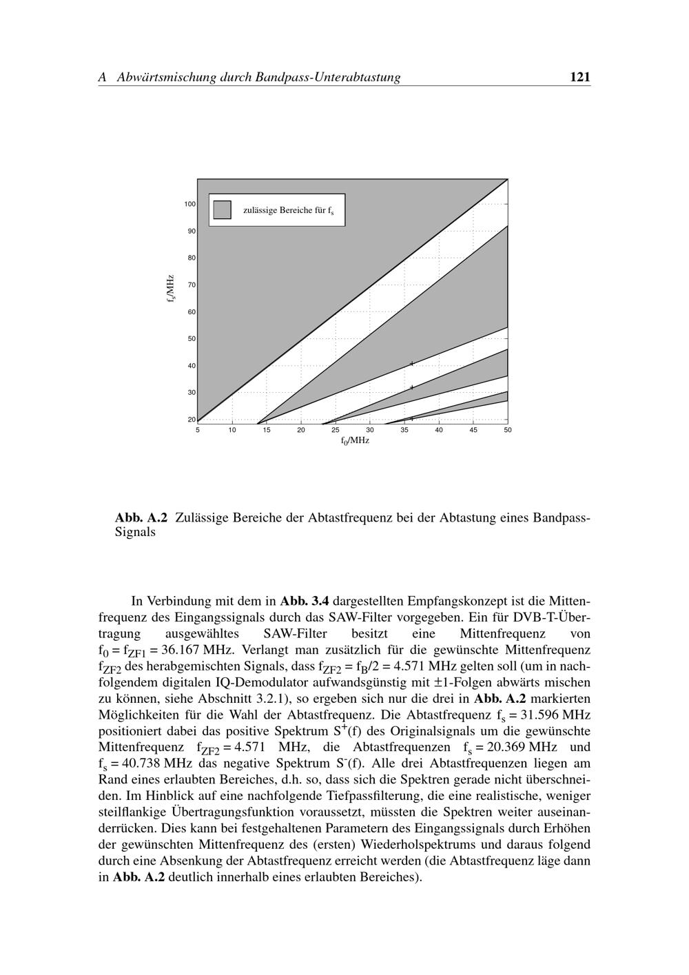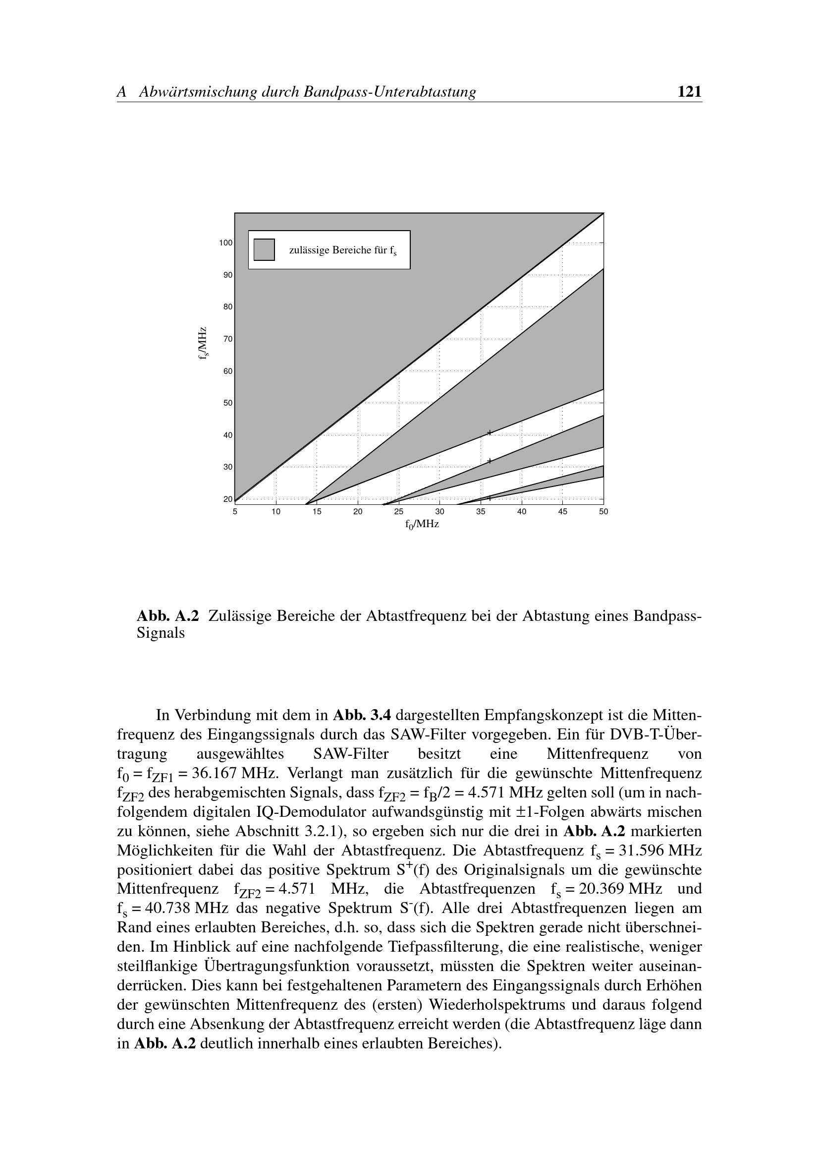 Abb. A.2 Zulässige Bereiche der Abtastfrequenz bei der Abtastung eines Bandpass-[...]