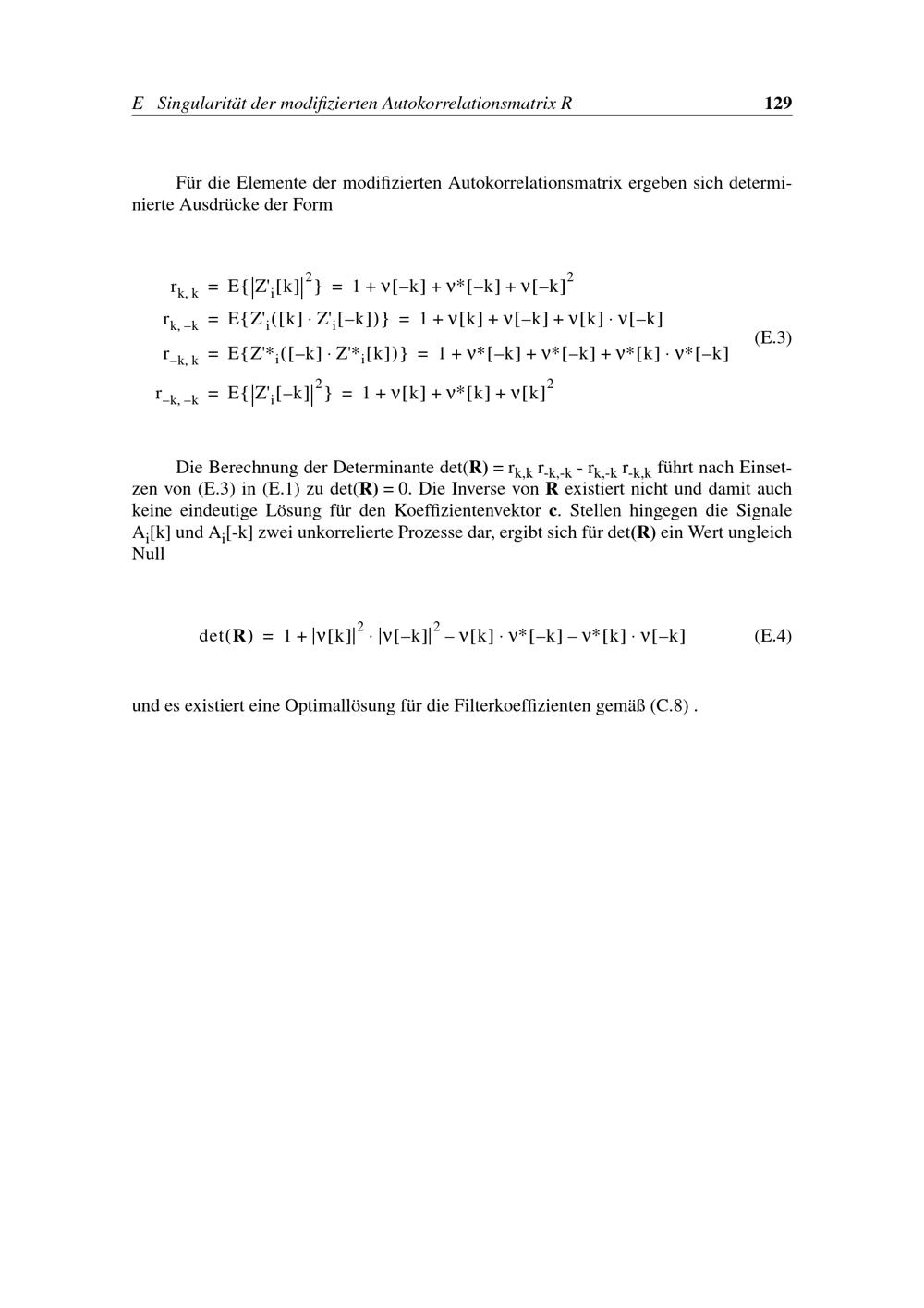 Anhang E Singularität der modifizierten Autokorrelationsmatrix R