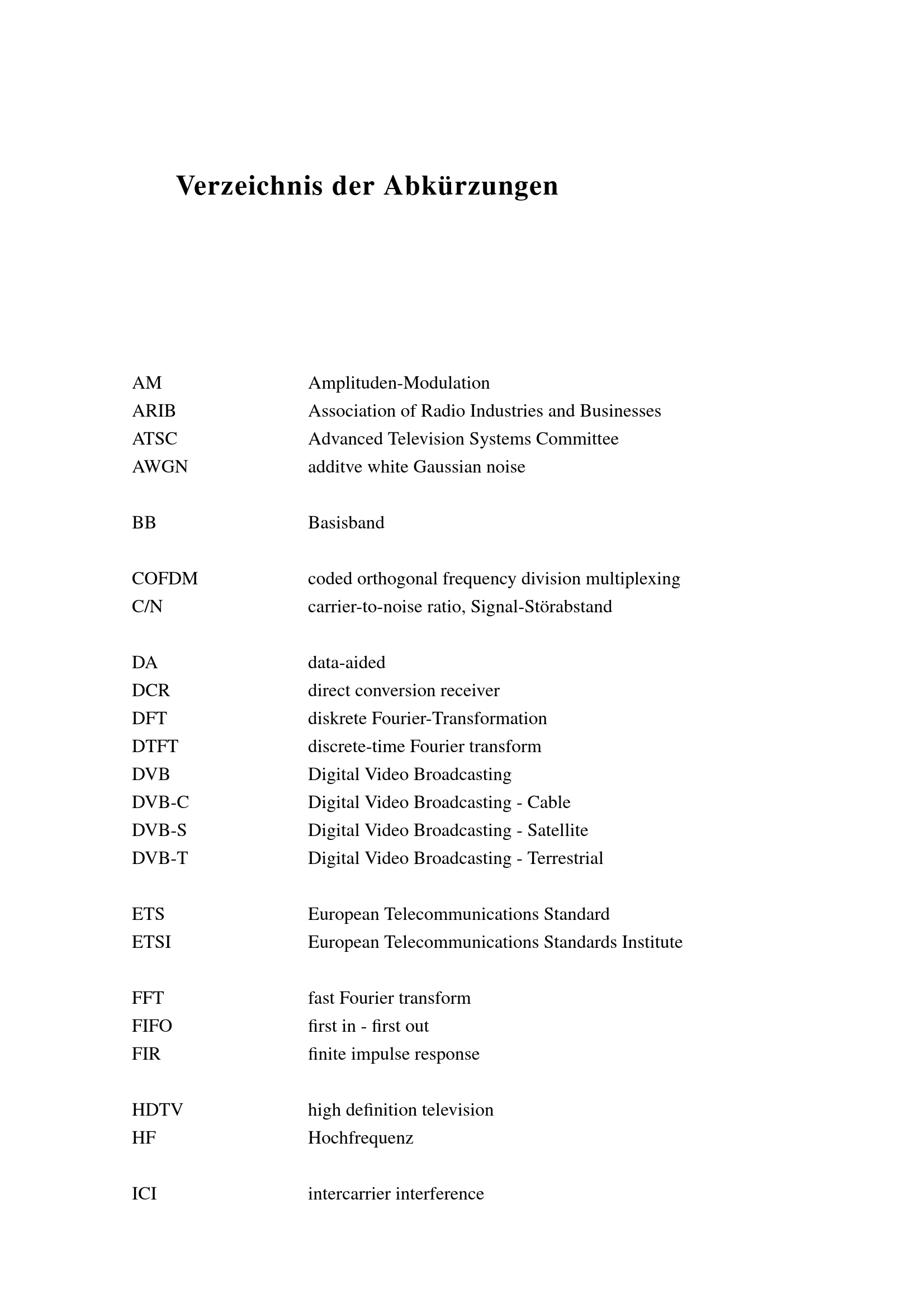 Verzeichnis der Abkürzungen