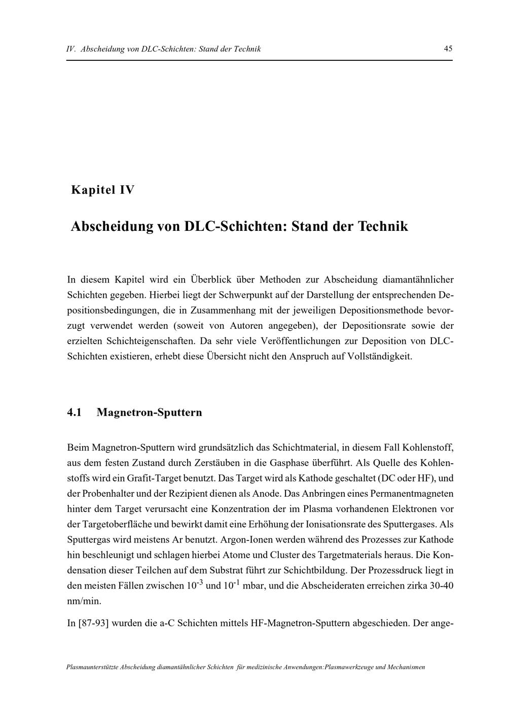 Plasmaunterstützte Abscheidung diamantähnlicher Schichten für medizinische Anwendungen:[...]