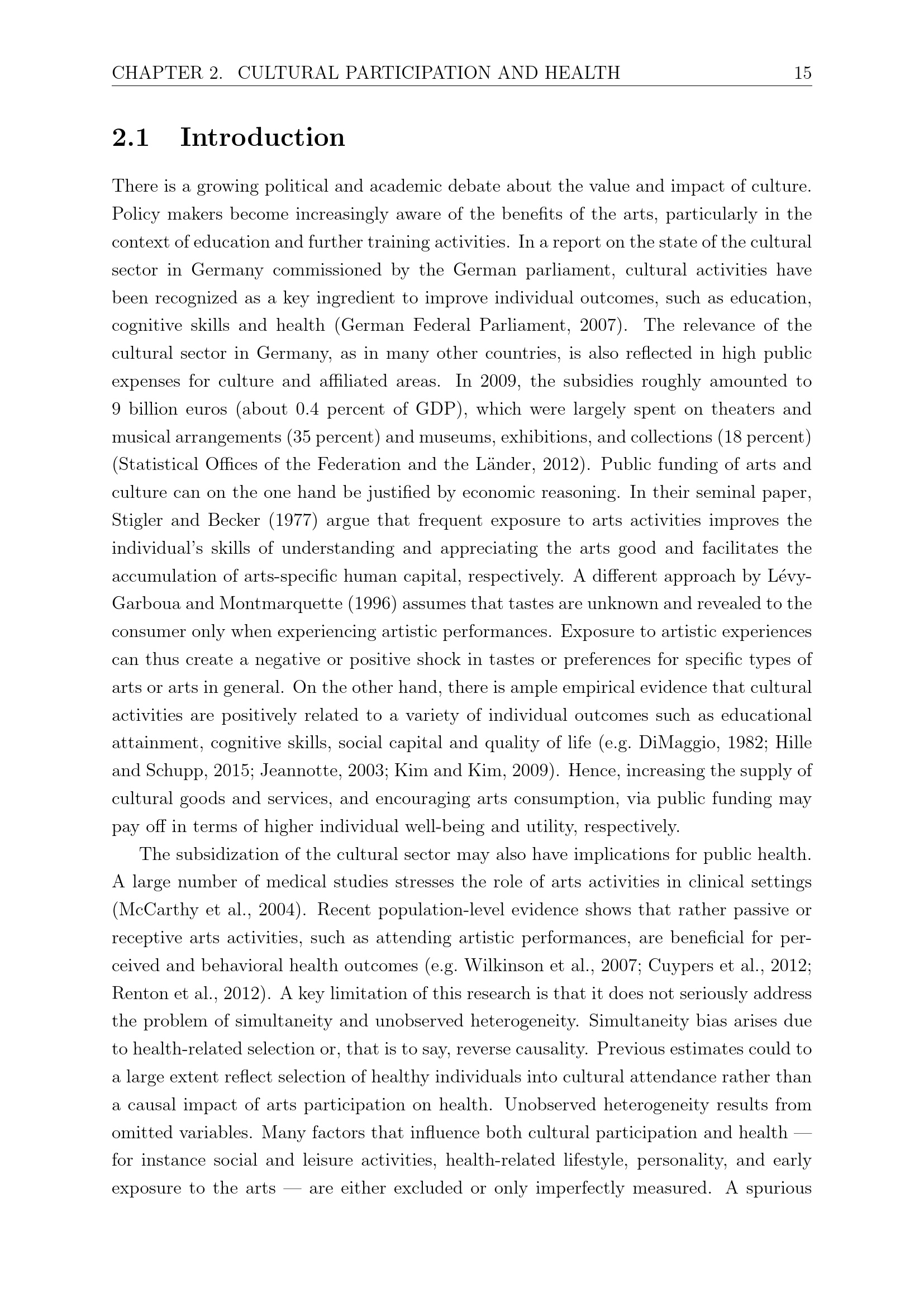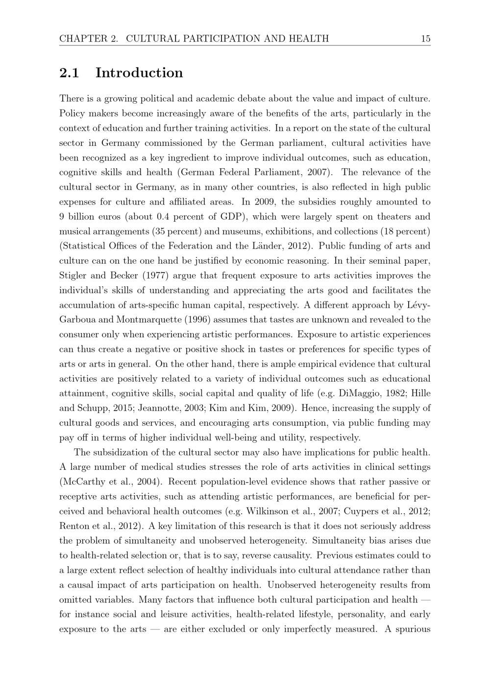 Cultural Participation and Health