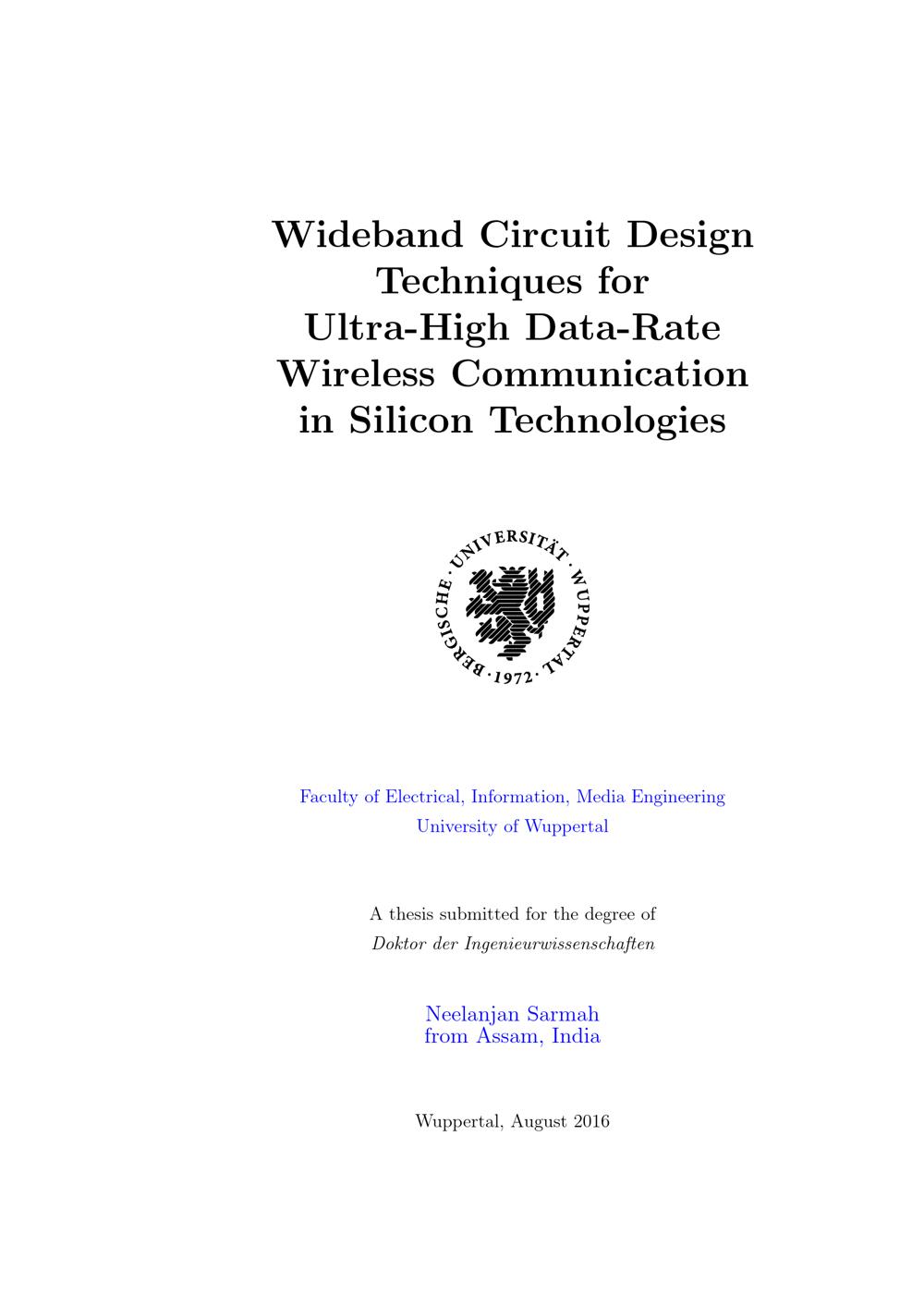 Wideband circuit design techniques for ultra-high data-rate wireless communication in silicon technologies / Neelanjan Sarmah from Assam, India