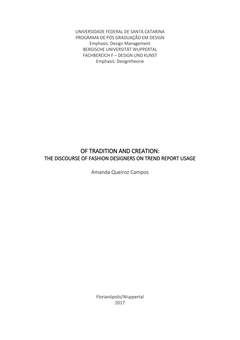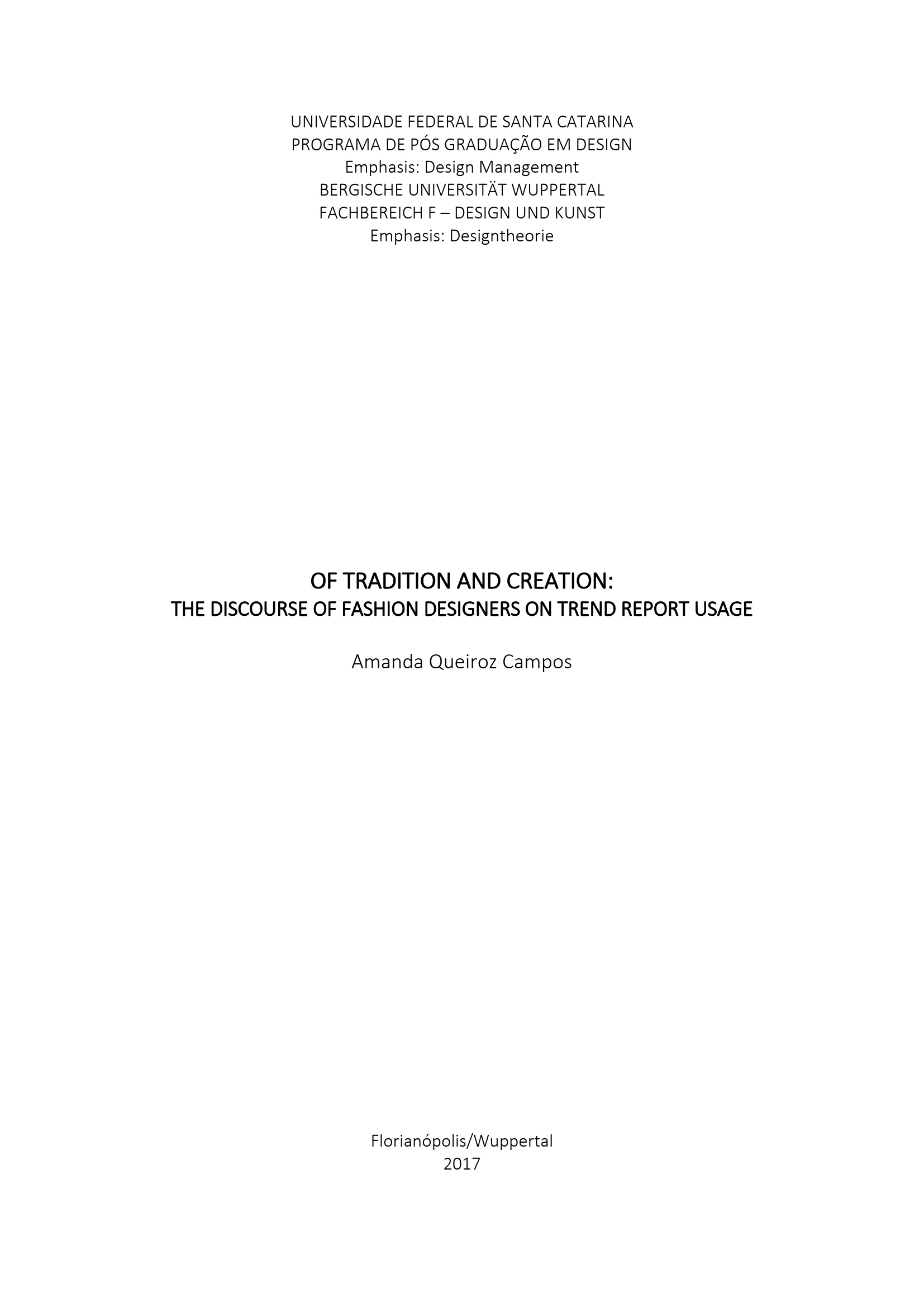 Of tradition and creation: the discourse of fashion designers on trend report usage / Amanda Queiroz Campos