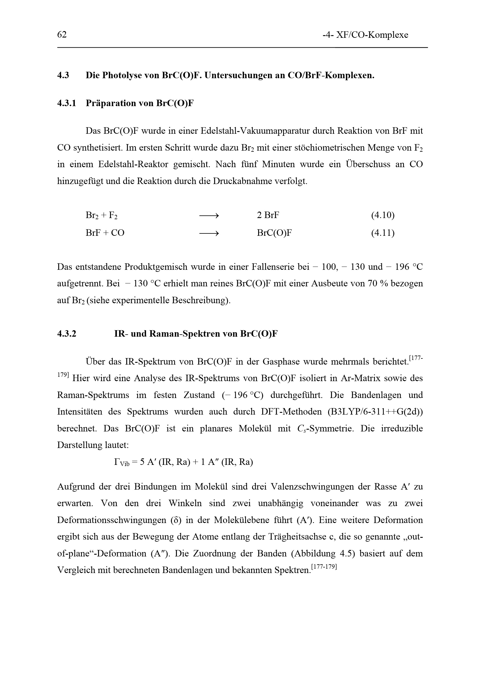 4.3 Die Photolyse von BrC(O)F. Untersuchungen an CO/BrF-Komplexen