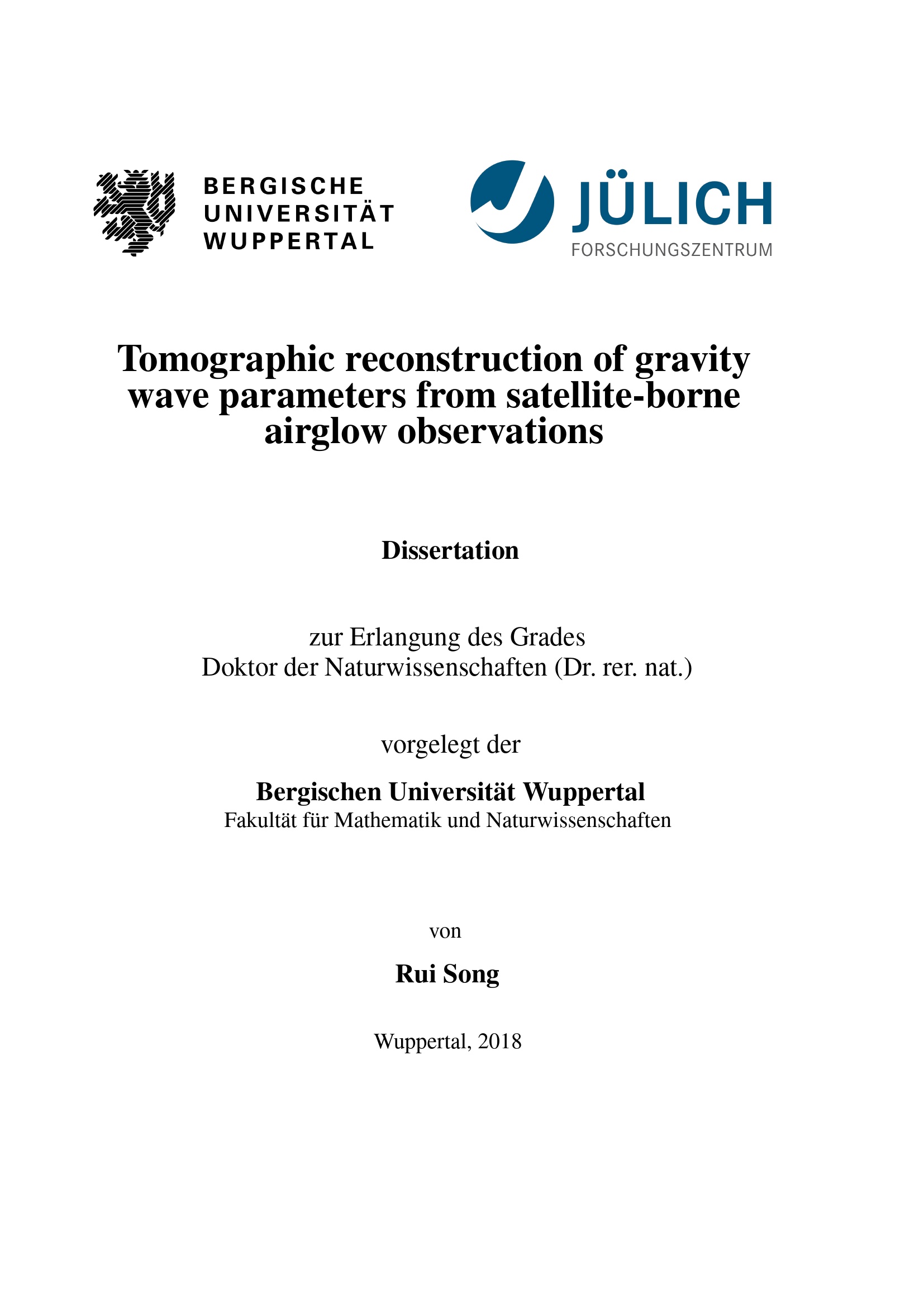 Tomographic reconstruction of gravity wave parameters from satellite-borne airglow observations / von Rui Song