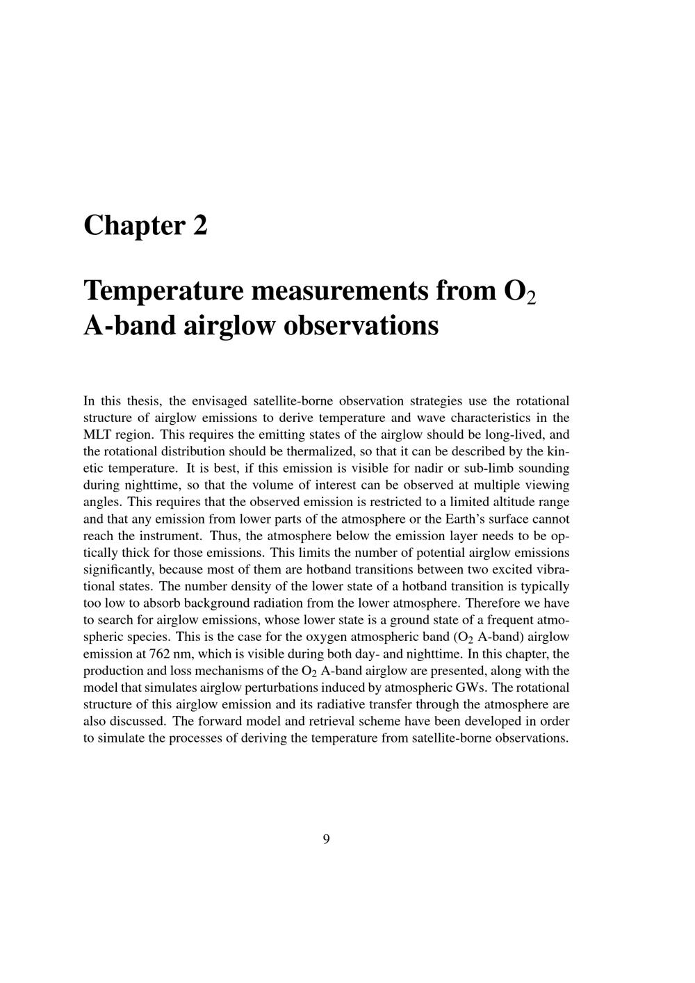 Temperature measurements from O2 A-band airglow observations