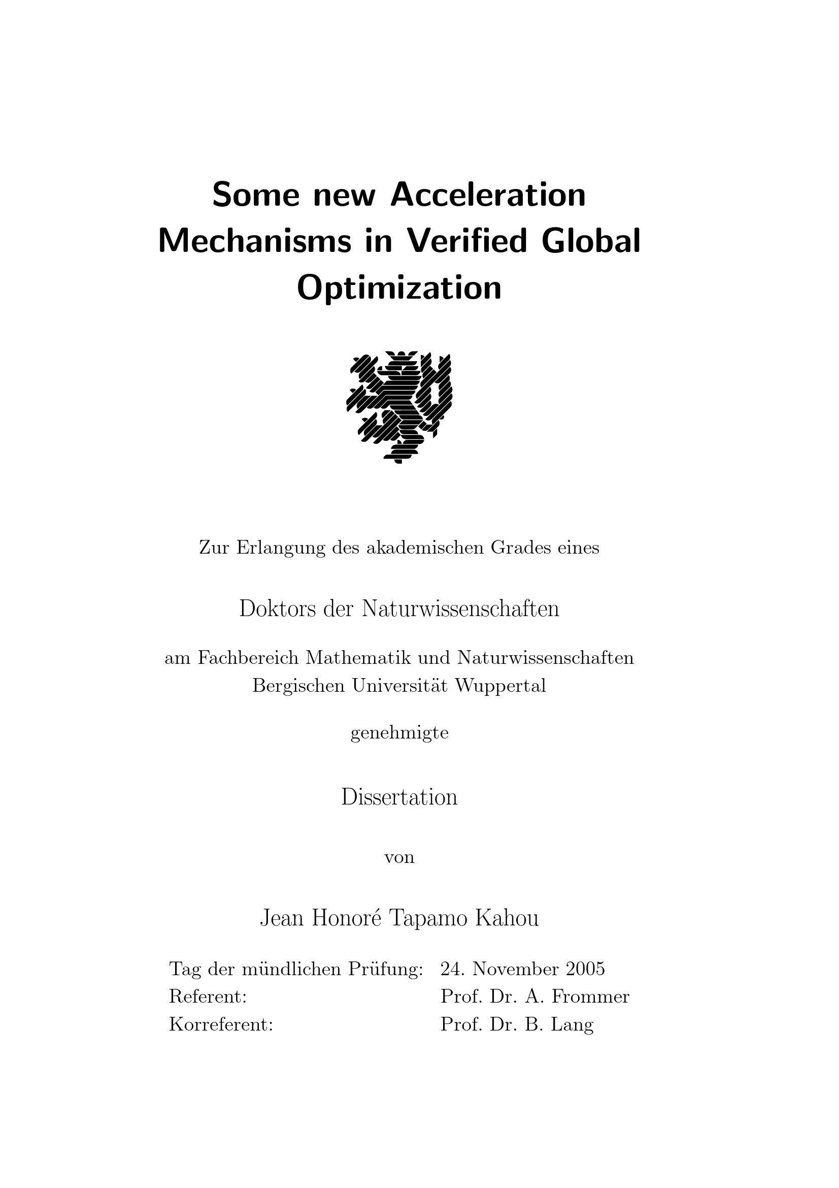 Some new acceleration mechanisms in verified global optimization / von Jean Honoré Tapamo Kahou