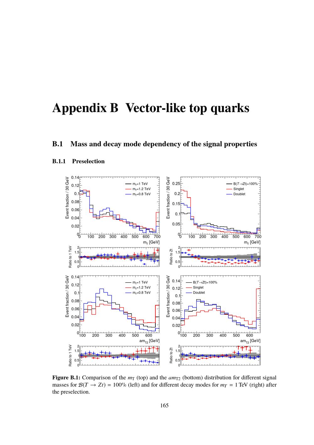 Mass and decay mode dependency of the signal properties